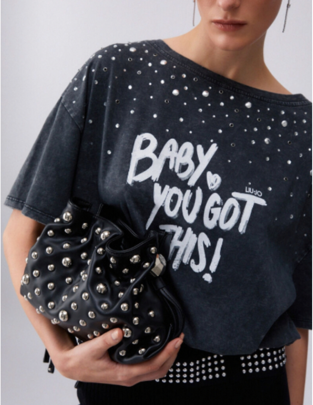This Liu Jo small Riccy shoulder bag combines contemporary style with bold detailing. Its plush volume is enriched with metallic studs that reflect light like tiny mirrors, while the drawstring and magnetic closure keep your essentials secure. :contentReference[oaicite:3]{index=3}