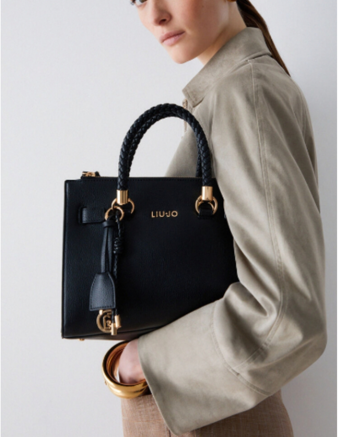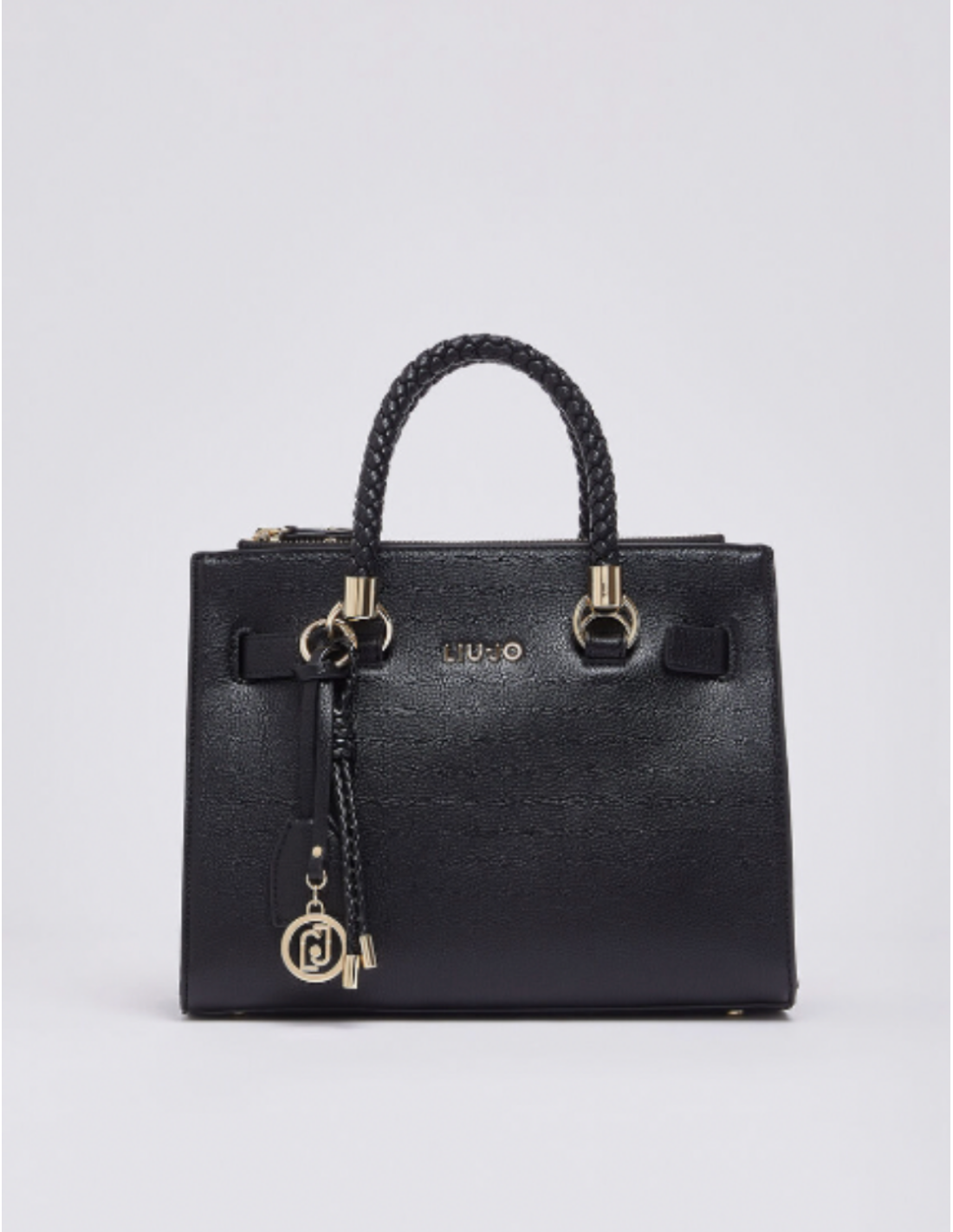 This Liu Jo small satchel with charms merges modern sophistication with practical design. Its compact size is perfect for carrying essentials, while the braided handles and matching charm add a refined and feminine touch to your outfit.
