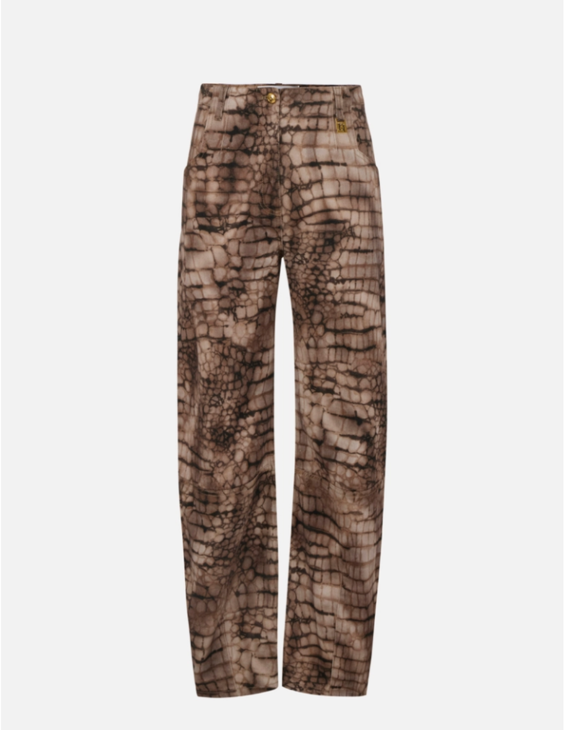These printed drill jeans are a statement piece in a modern wardrobe. Their distinctive pattern and refined cut make them perfect for bold and elegant outfits.