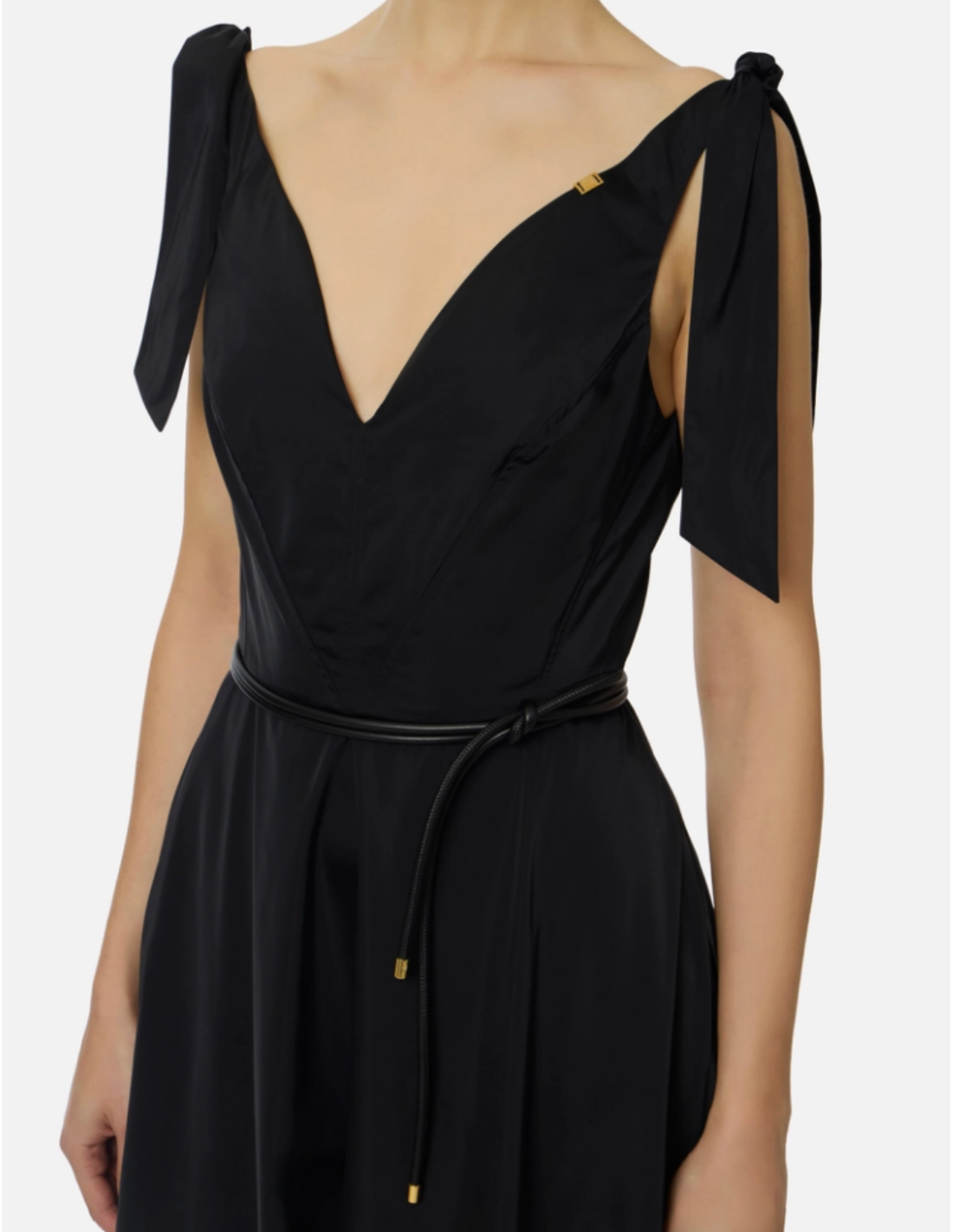 Elisabetta Franchi Dress in Black Voile Fabric - AB903