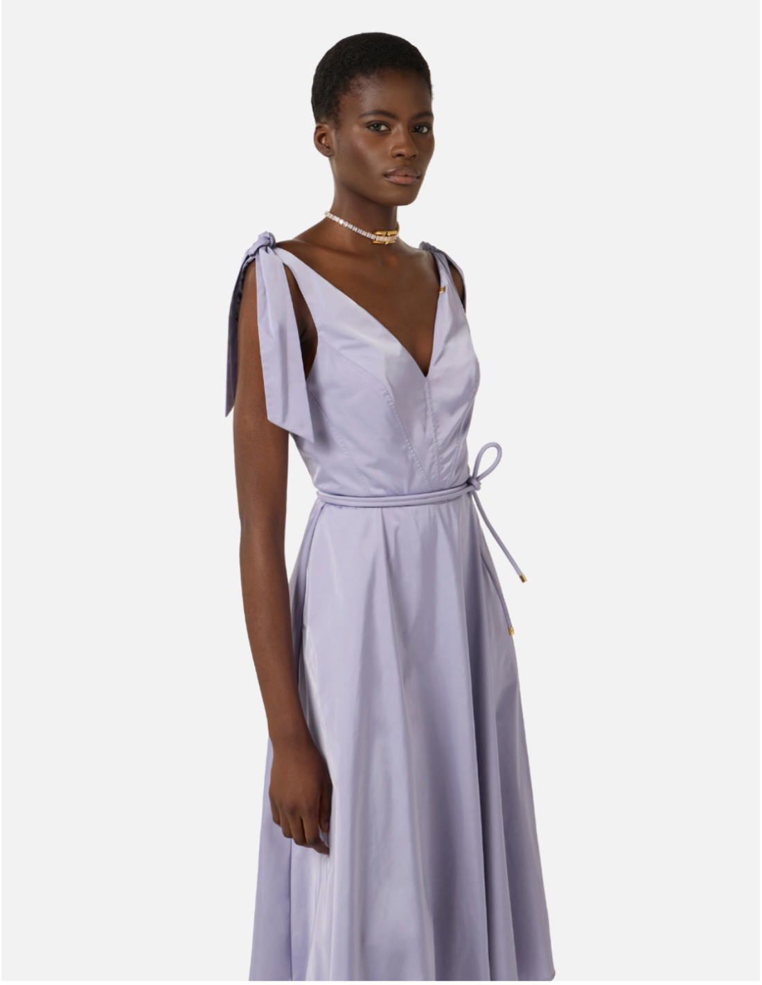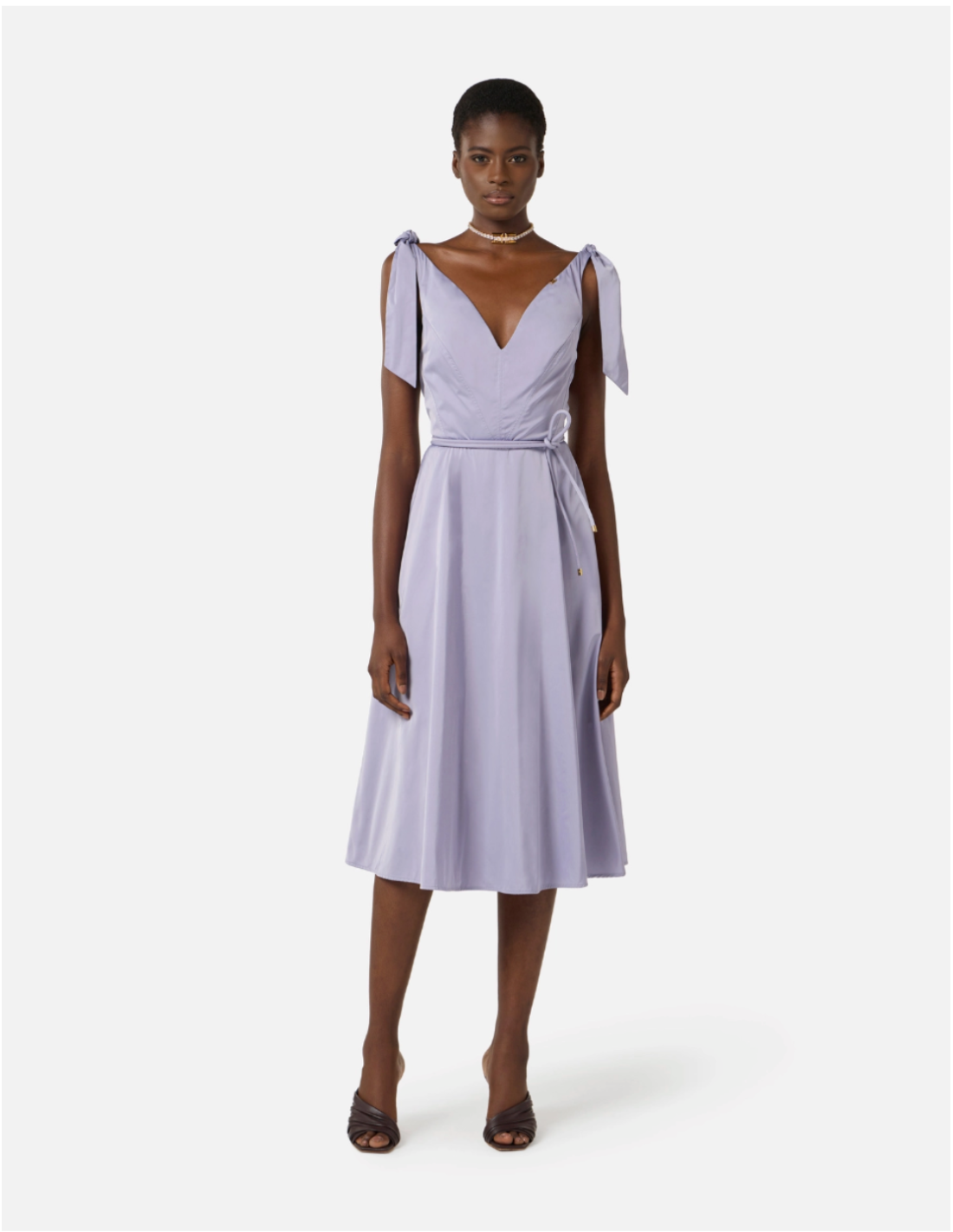 This voile fabric dress by Elisabetta Franchi offers a delicate, sophisticated look. Its regular fit and midi circle skirt create a refined silhouette perfect for both day and evening occasions. :contentReference[oaicite:1]{index=1}
