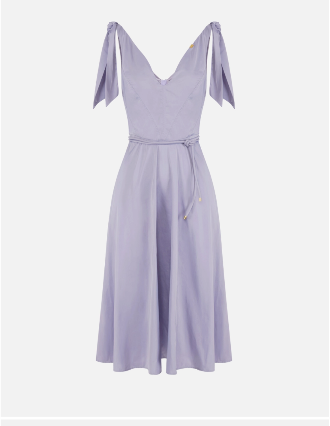 This voile fabric dress captivates with its lightweight feel and graceful structure. The shoulder knots add motion while the tubular belt defines the waist for a harmonious silhouette.