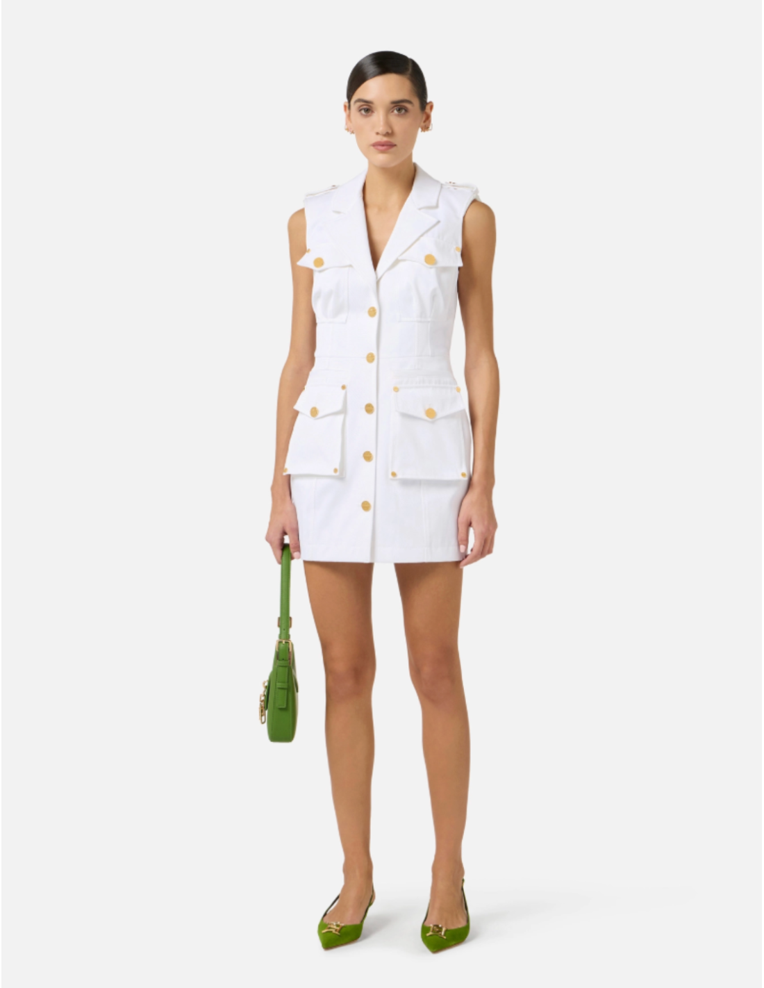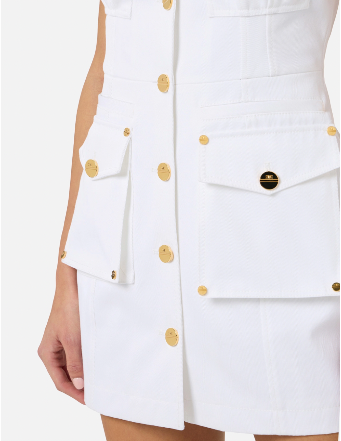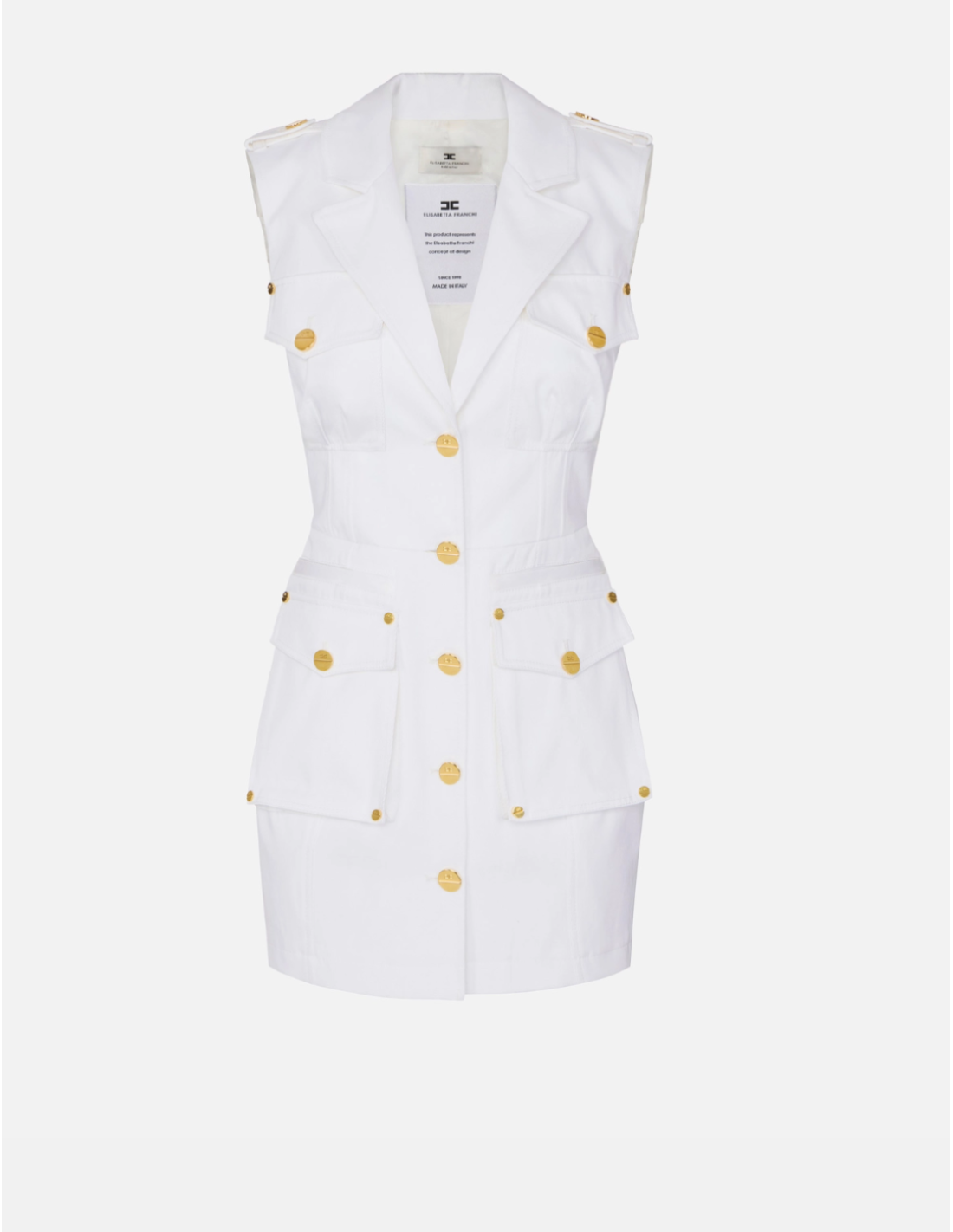 This Elisabetta Franchi cotton gabardine dress blends structured design with modern utility. Featuring a regular fit and large flap pockets, it offers a contemporary silhouette with refined details suitable for elevated everyday looks.