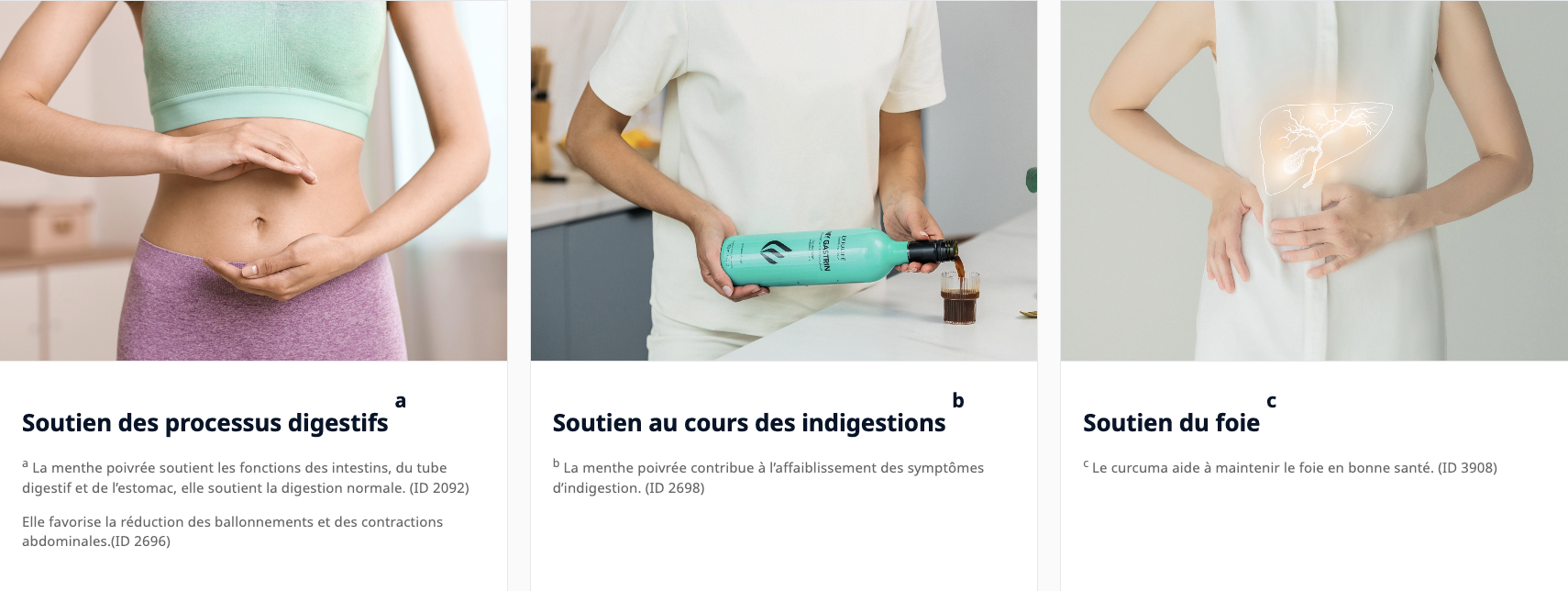 - Férule fétide : Plante médicinale indienne, elle améliore la digestion, soutient la sécrétion de la salive, l’activité des enzymes digestives, la production d’acides biliaires et aide à éliminer ballonnements et constipation. Microencapsulée grâce à la technologie FenuMAT pour un goût agréable et une libération prolongée.