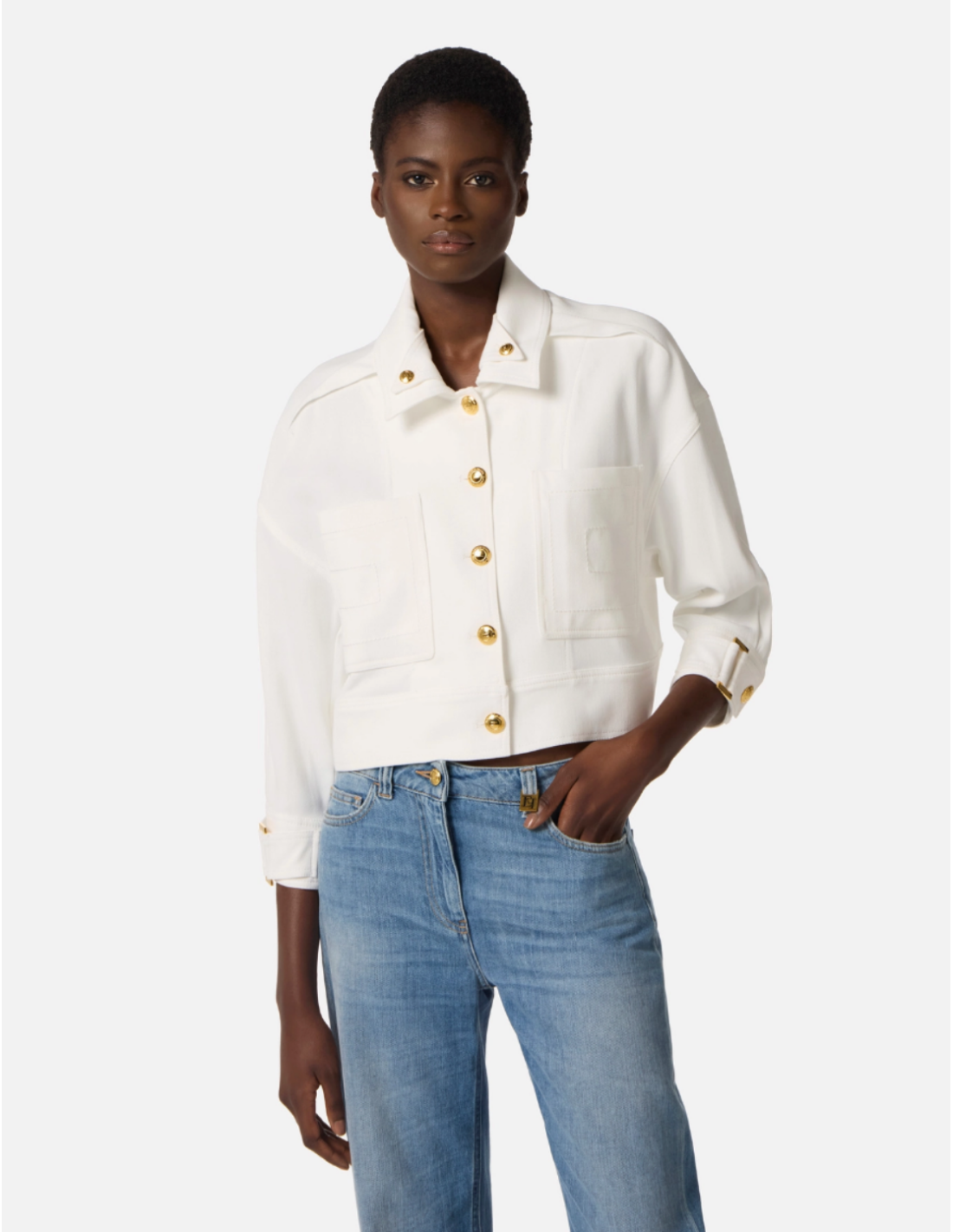 Elisabetta Franchi gabardine pea coat with jewel buttons