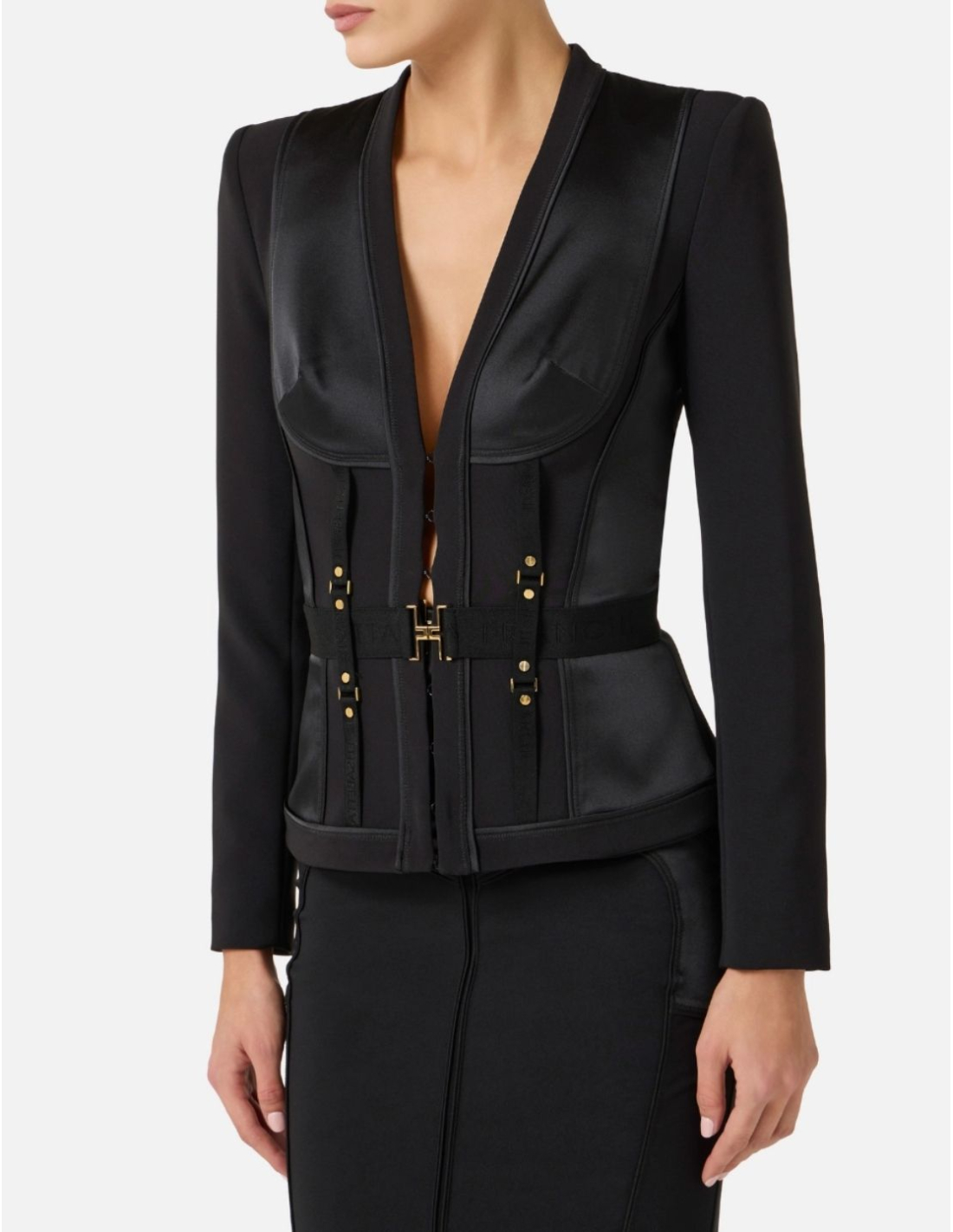 Black bustier jacket in light crepe & satin – Couture elegance & refined allure