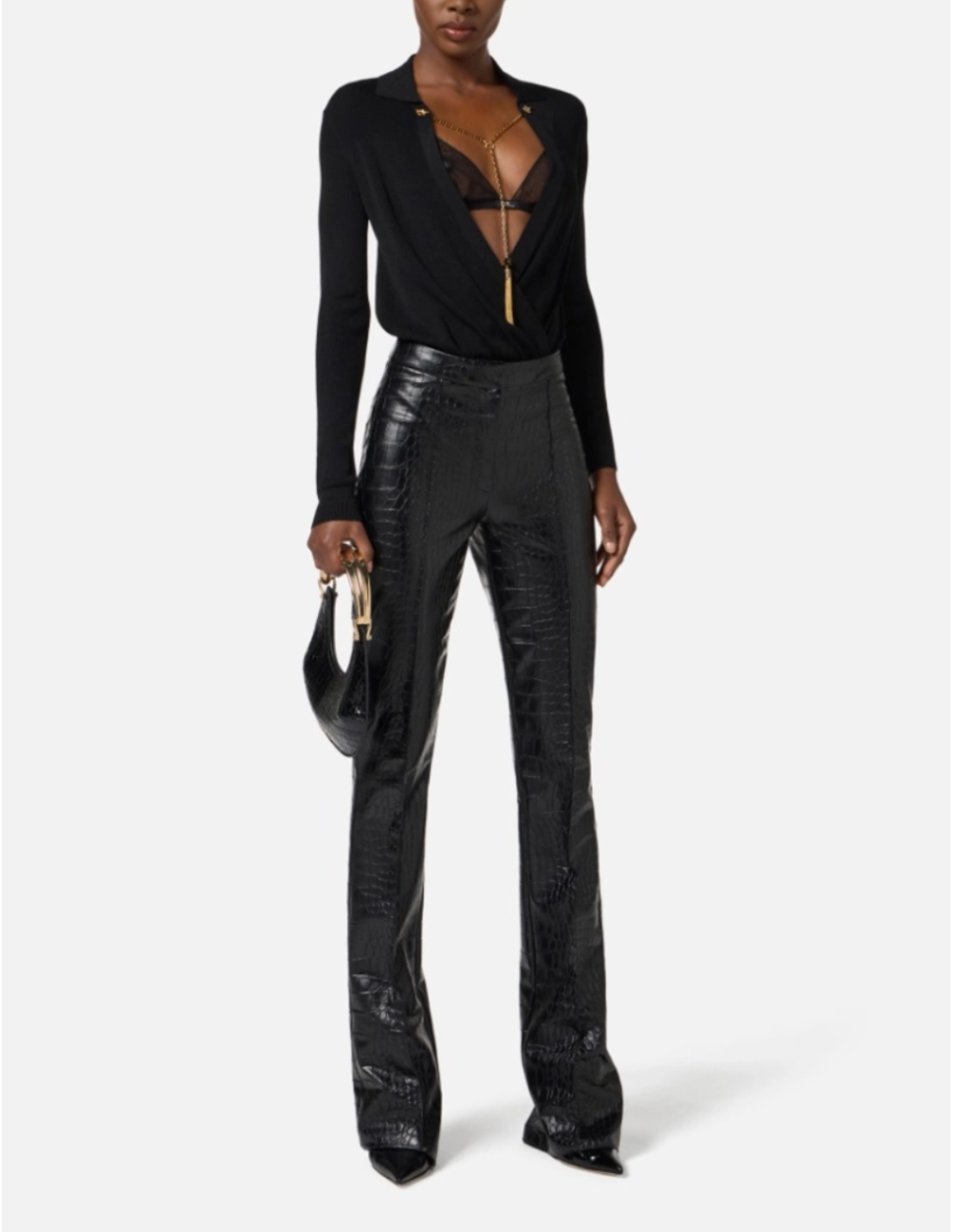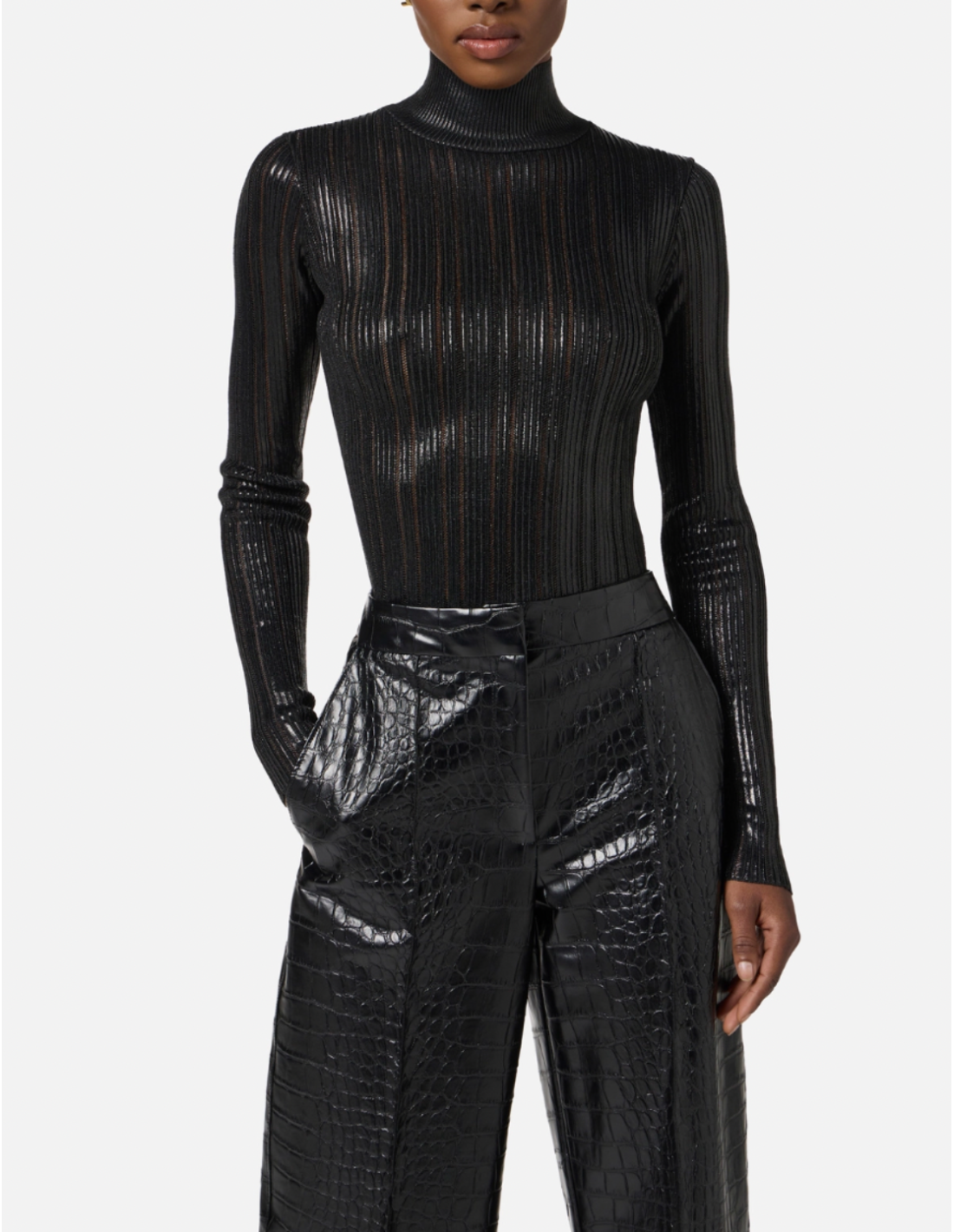 ELISABETTA FRANCHI Pull laminé noir - MK17Q
