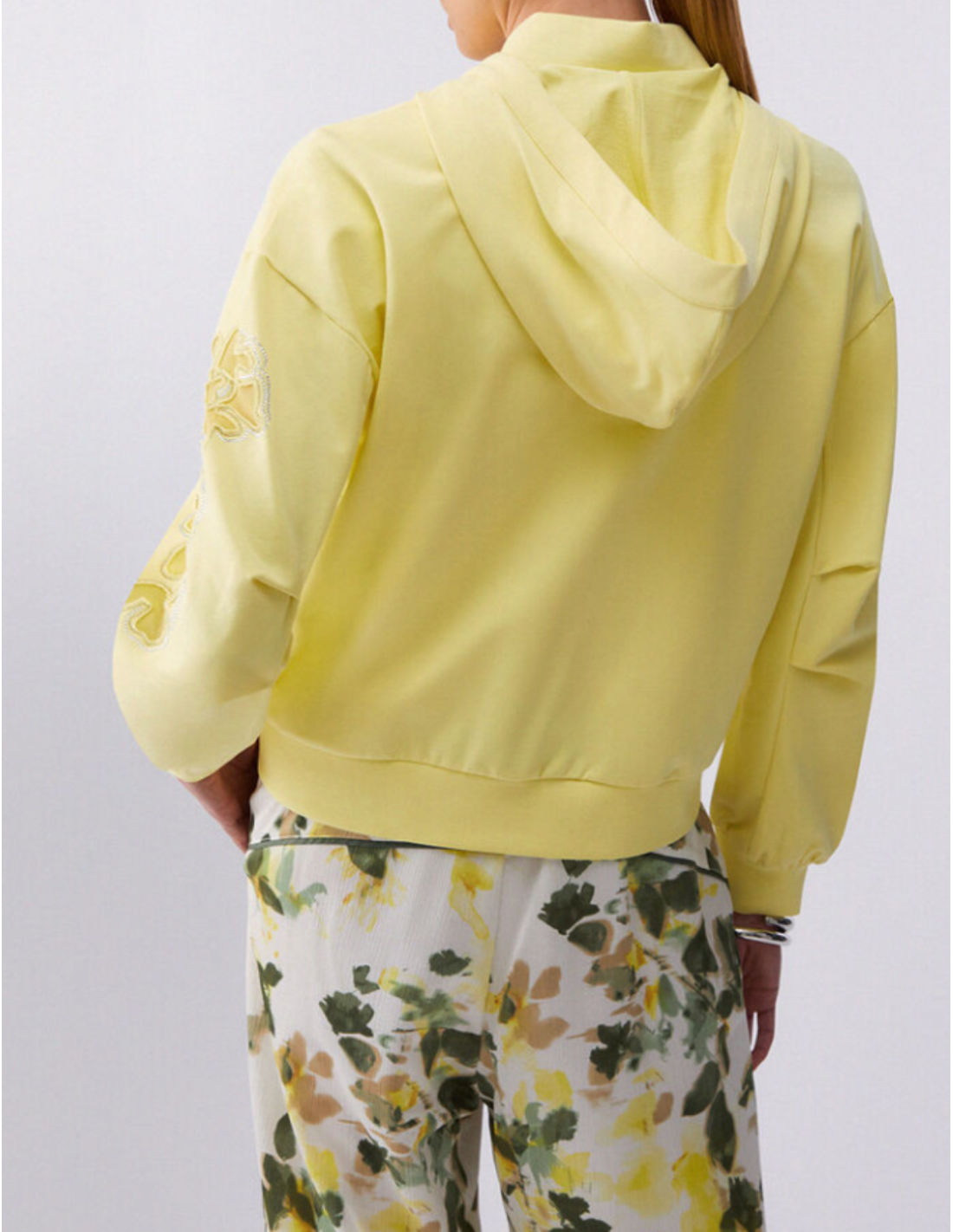 Hooded sweatshirt with embroidered flowers in bright yellow – Chic floral & modern comfort