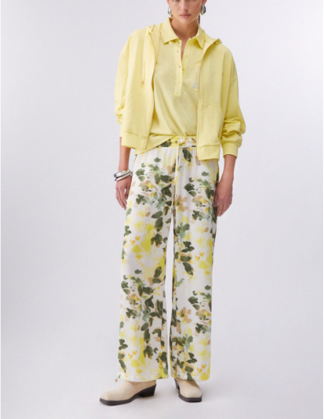 Our hooded sweatshirt with embroidered flowers is a key piece that combines comfort and distinctive style. The stretch cotton fabric is comfortable all day, while the floral embroidery adds a refined feminine accent.