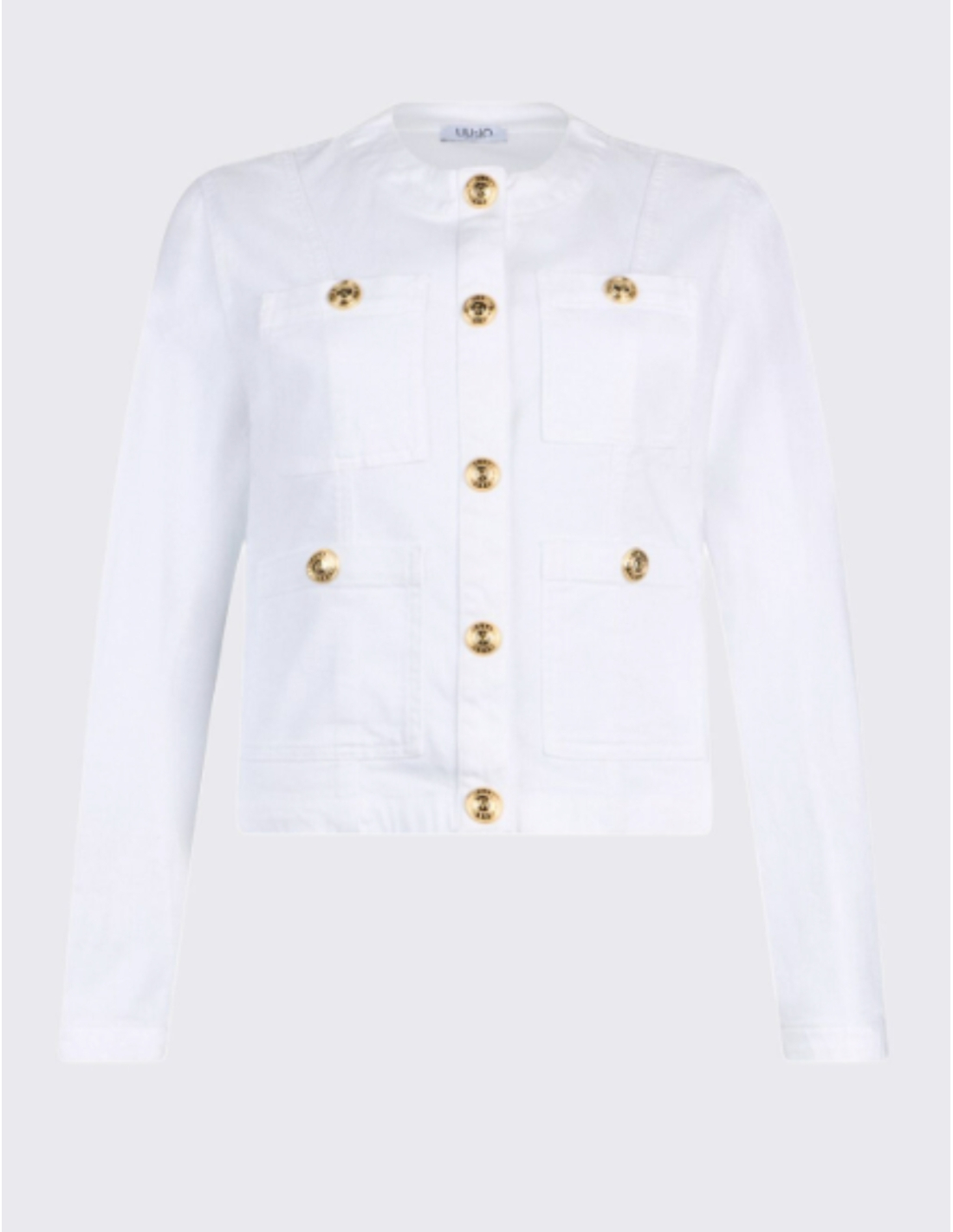 This Liu Jo jacket with logo buttons perfectly blends sophistication and modern style. Its structured cut enhances the silhouette while the metal logo buttons add a distinctive and refined touch. Designed in a comfortable fabric, it can easily transition from a professional outfit to a chic everyday look.