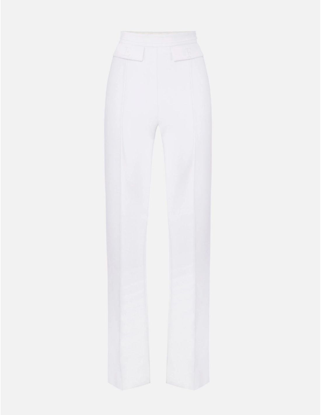 Ivory double stretch crepe trousers – Tailored elegance & embroidered logo detail