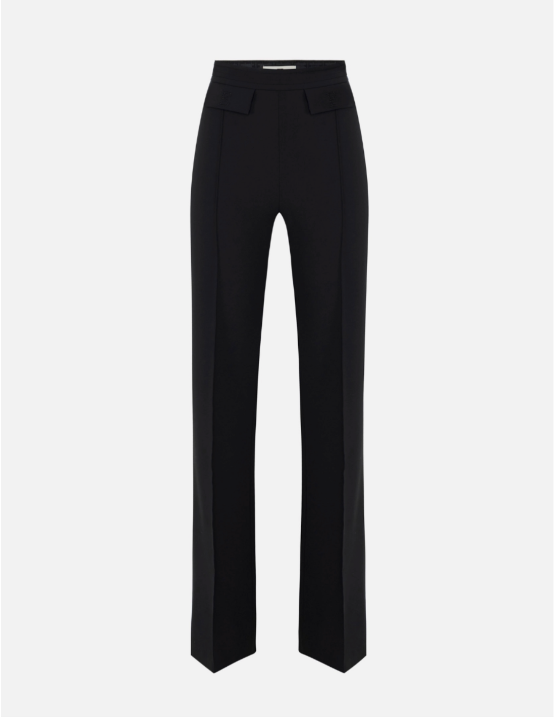 Black double stretch crepe trousers – Tailored elegance & embroidered logo detail