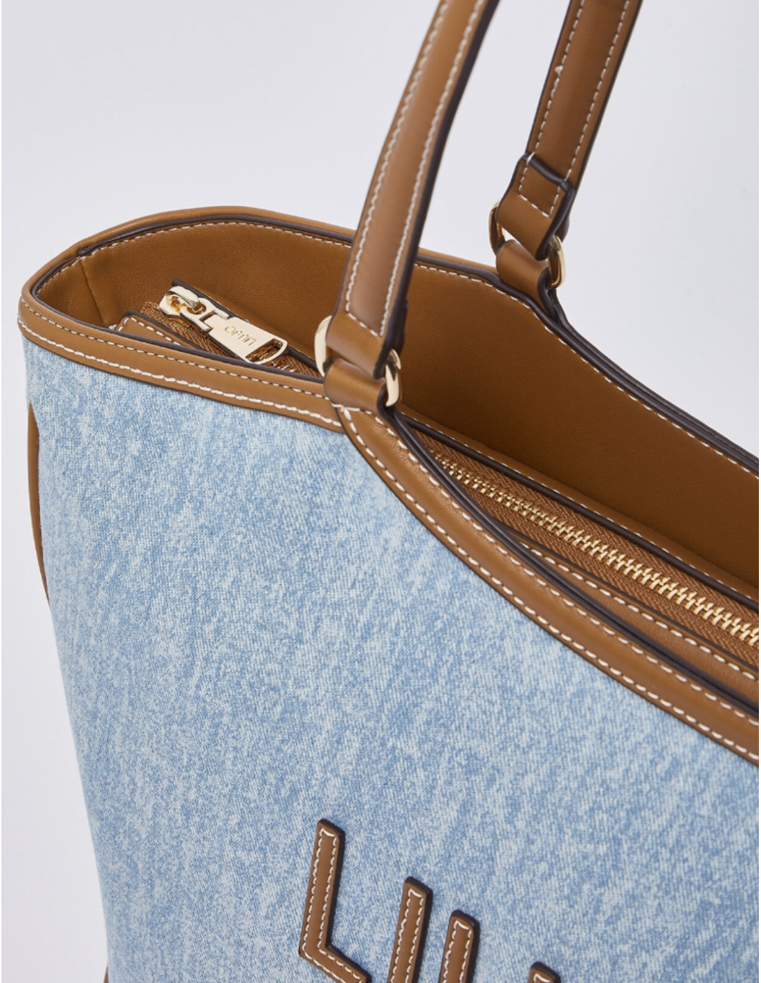 This large light denim tote bag combines a casual chic aesthetic with a spacious, functional silhouette. Its sturdy denim construction and contrasting trims give it character while remaining versatile for everyday outfits.