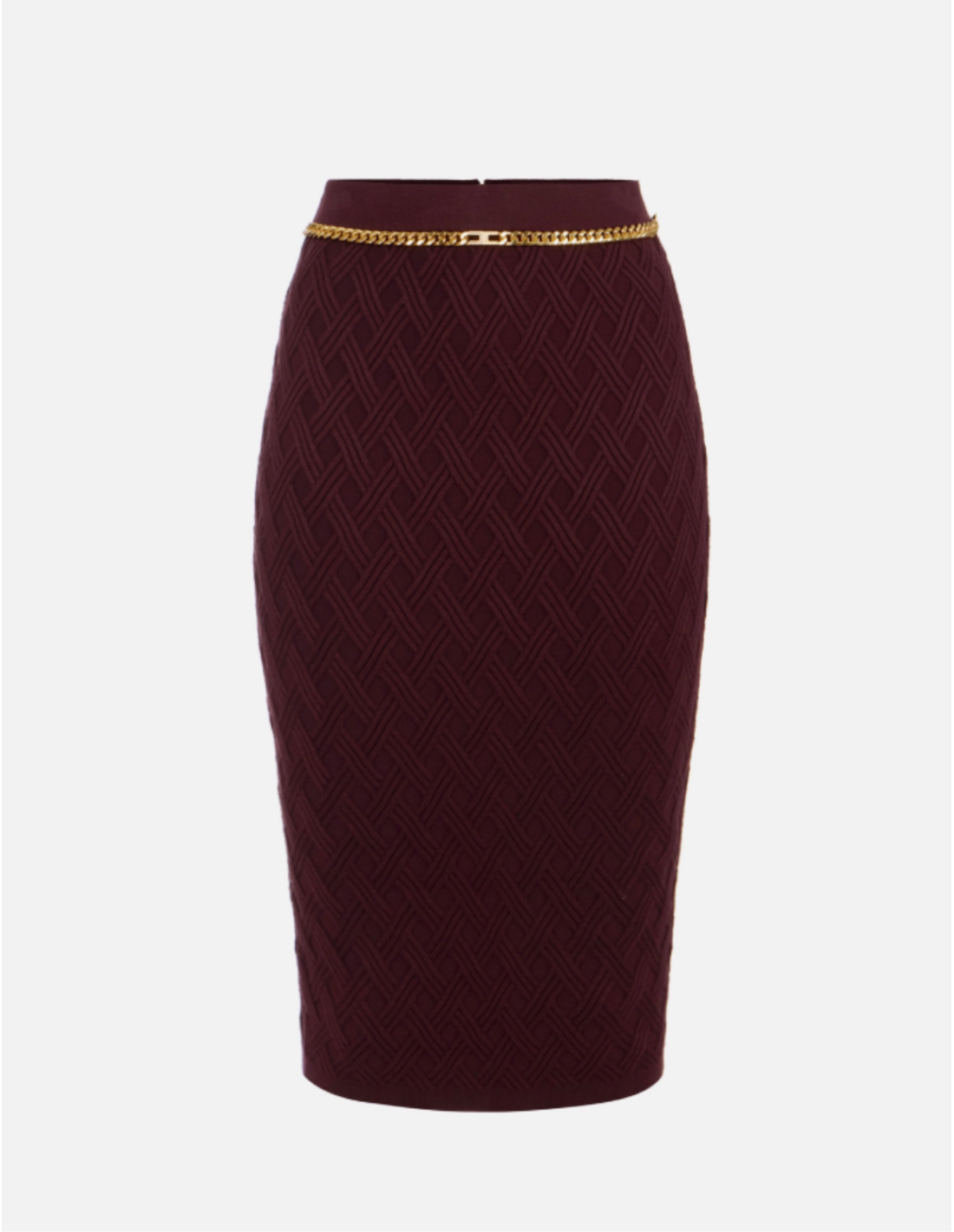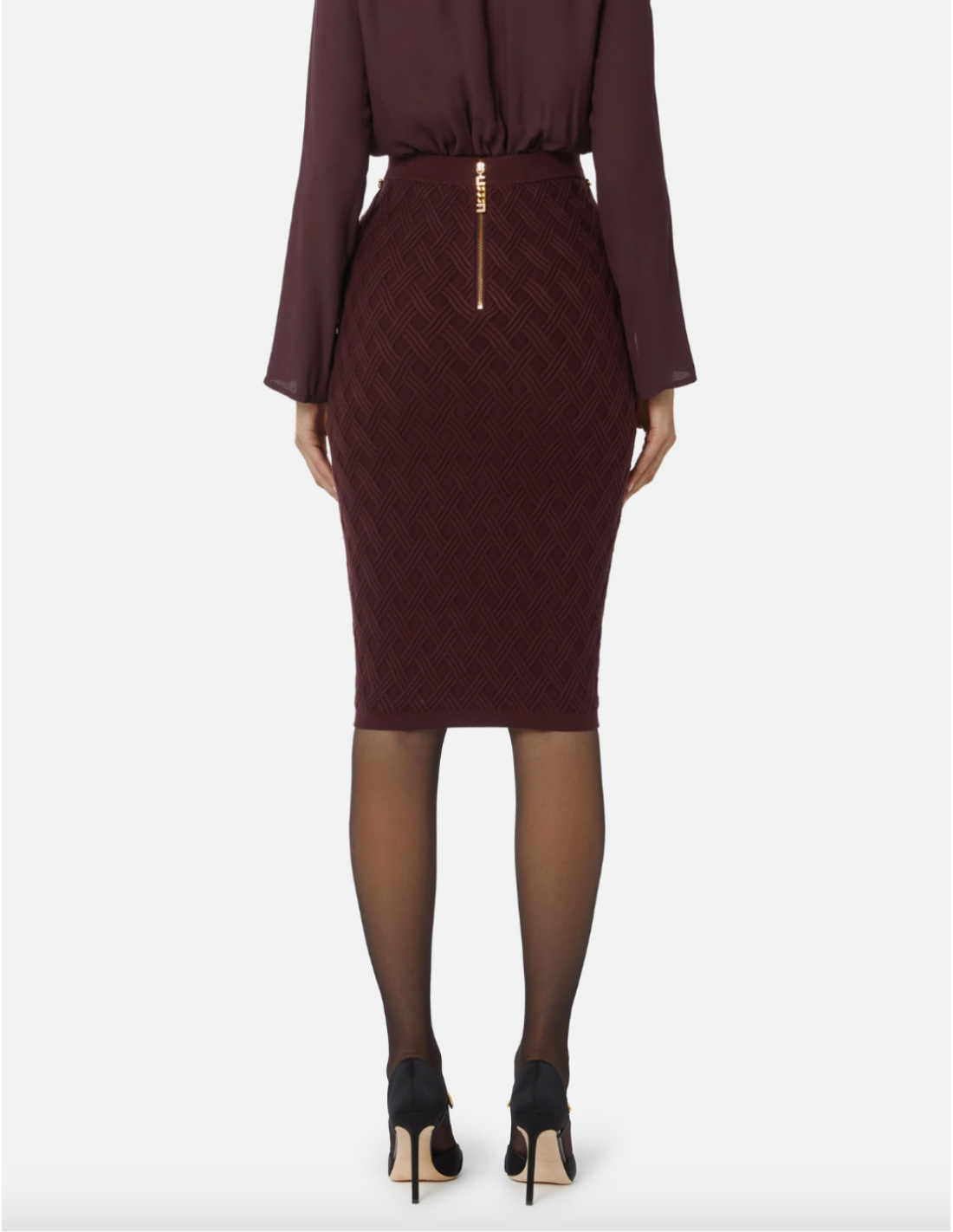 ELISABETTA FRANCHI Jupe Crayon en Tricot Merlot - GK20B
