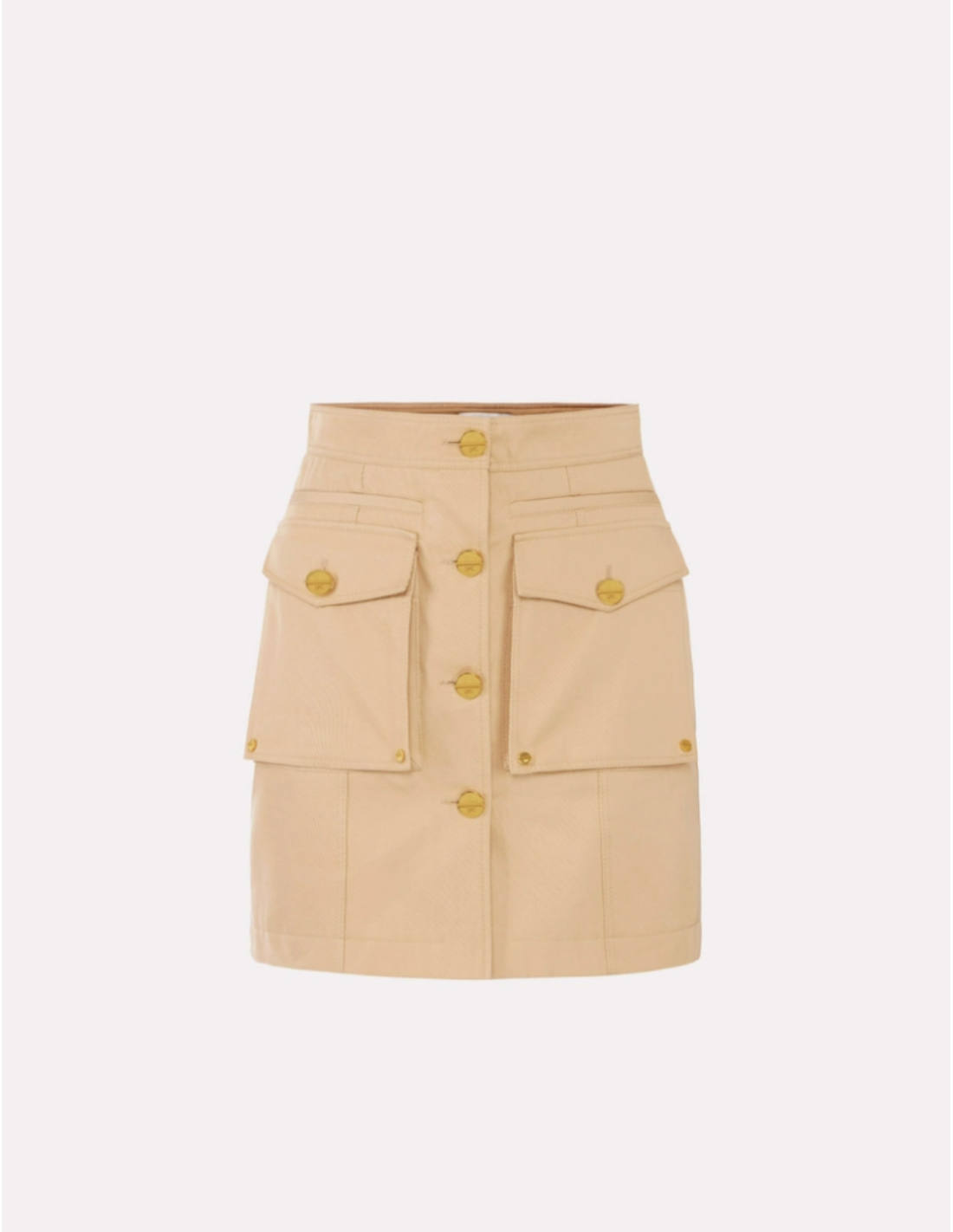 This cotton gabardine mini-skirt blends clean lines and utilitarian details for a modern versatile piece. It works beautifully to elevate both casual and polished looks.