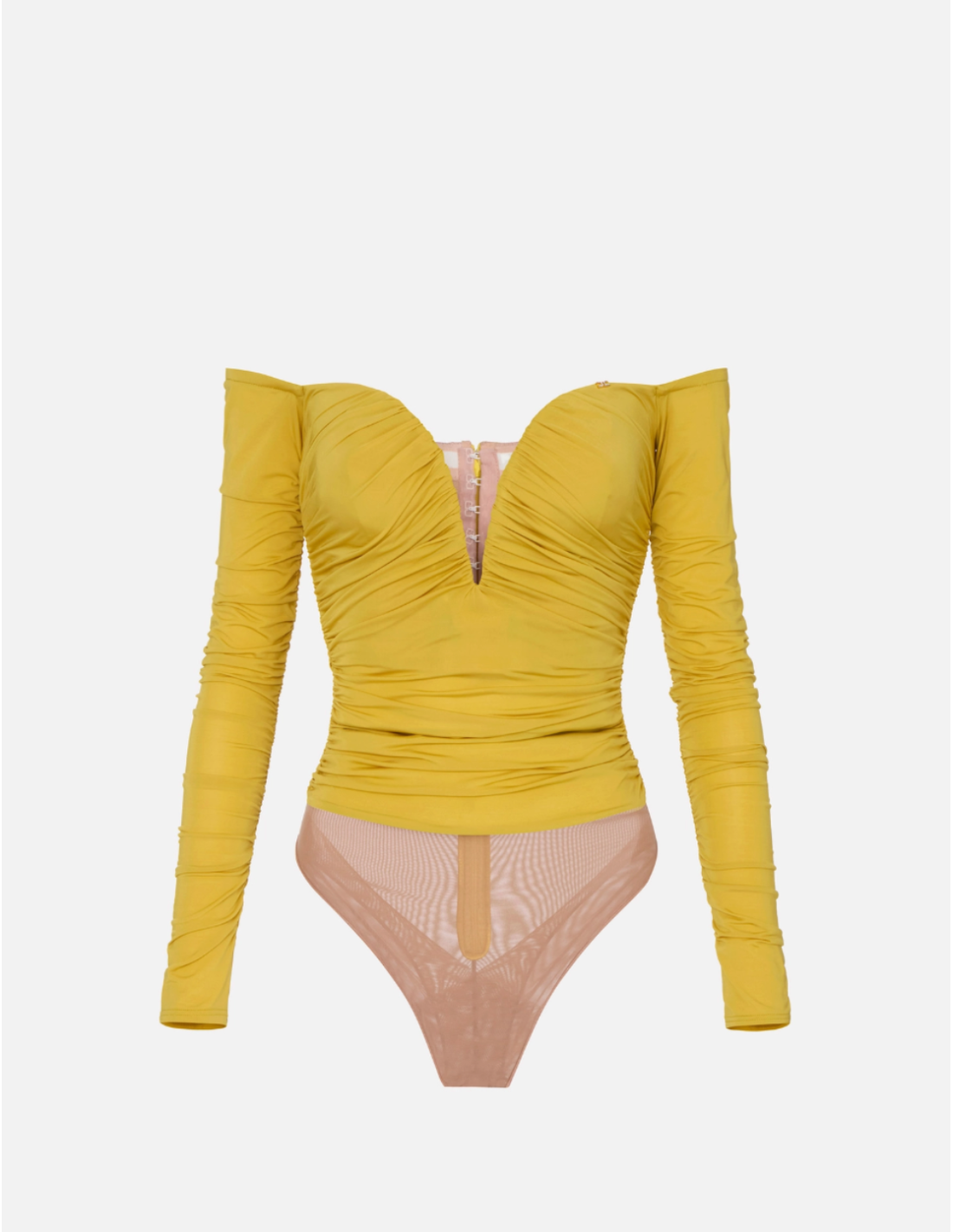 According to the Movida style, pair this bodysuit with high‑waist trousers or an elegant skirt for a polished evening outfit or a chic urban look.