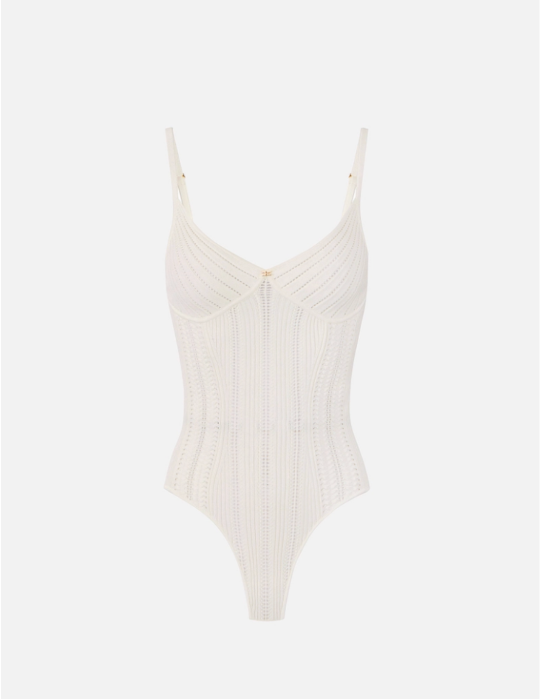 Openwork knit bodysuit – Elegant design & sculpted silhouette