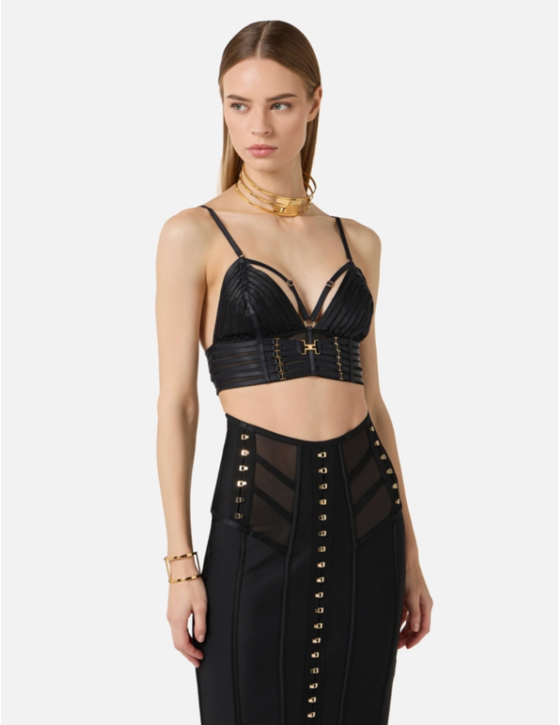 ELISABETTA FRANCHI Black Tulle and Elastic Top – RG009
