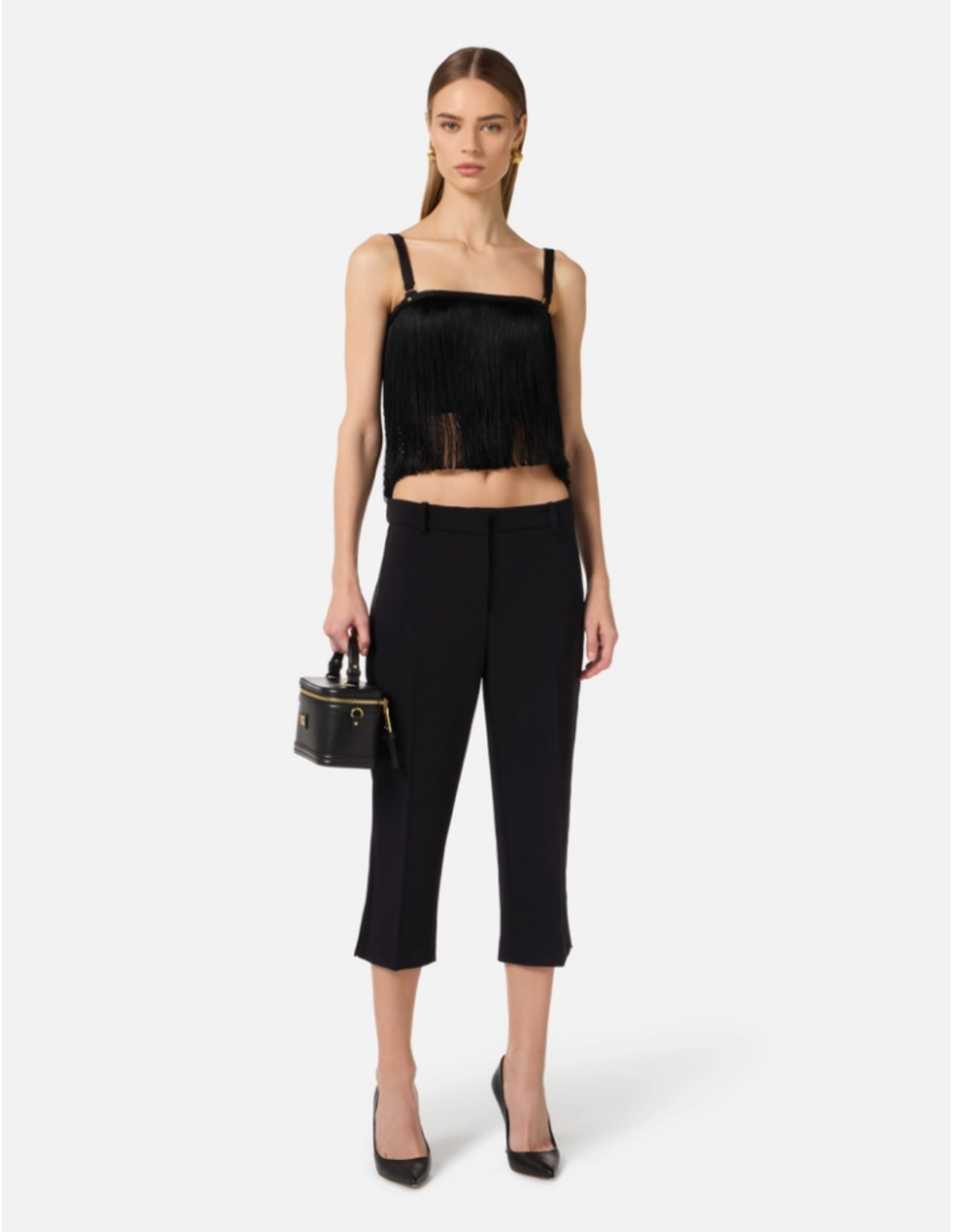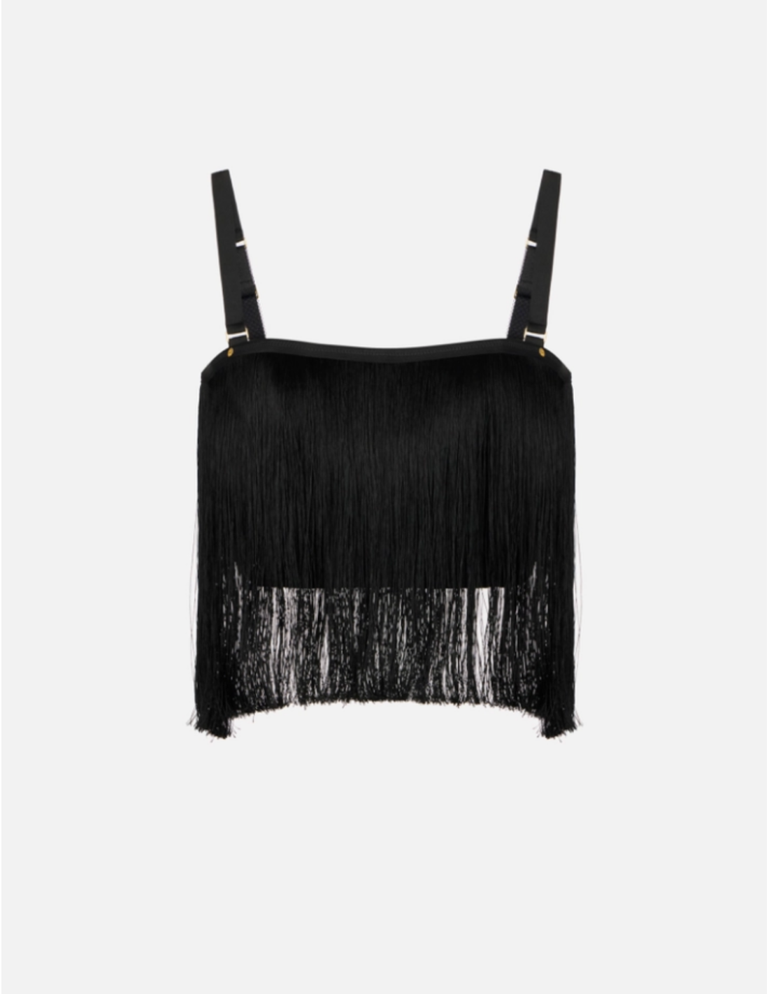ELISABETTA FRANCHI Black Fringe Top – TO062