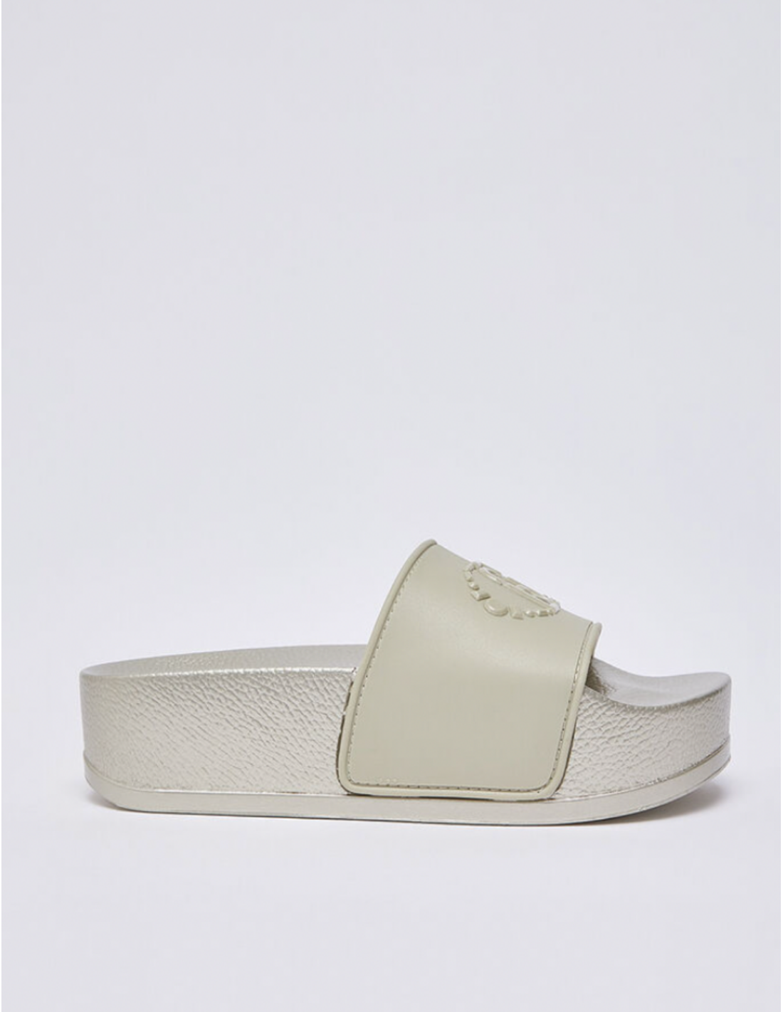 Ces mules à plateforme avec logo allient design contemporain et confort absolu. La bande large logotée avec monogramme en relief apporte une signature visuelle forte, parfaite pour un look casual chic.