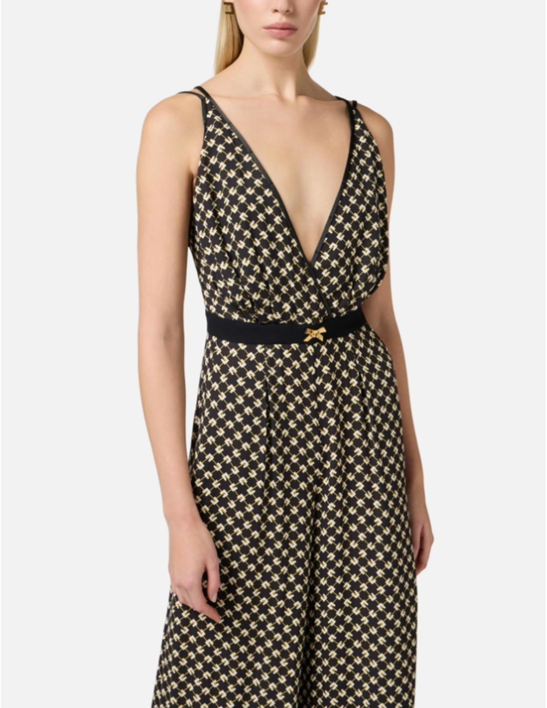 Cette combinaison imprimée en georgette fait partie de notre collection Outlet Elisabetta Franchi. Une pièce iconique disponible dans notre boutique à Nice.