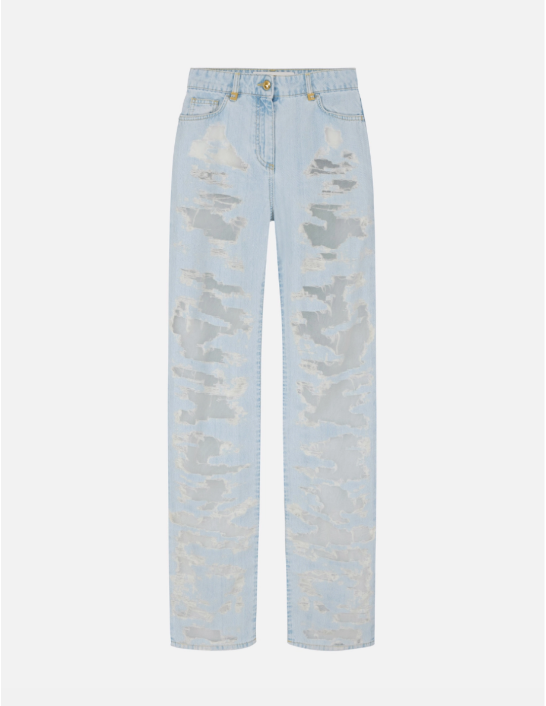 Ce jean palazzo avec détails en organdi allie l’allure détendue du denim à une touche délicate et sophistiquée grâce à ses inserts en organdi. La coupe palazzo crée une silhouette fluide et élégante, parfaite pour les looks contemporains et structurés.