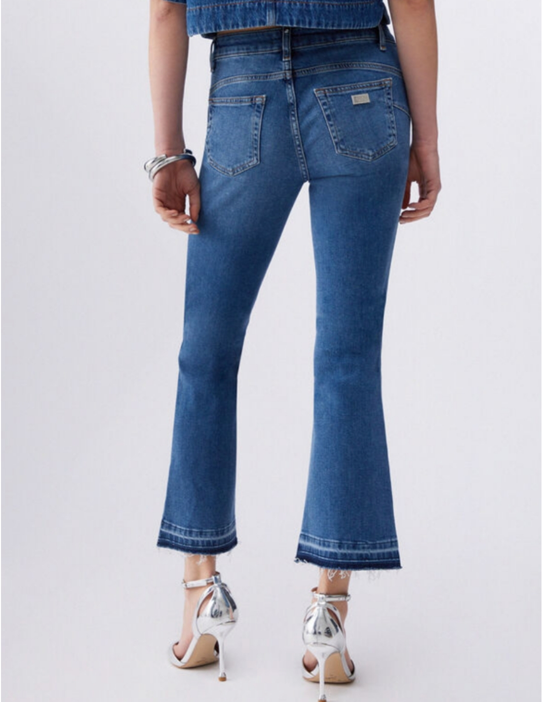 Ce jean bootcut avec ourlets bruts Liu Jo associe une silhouette féminine et des détails mode pour un look moderne. Sa coupe légèrement évasée au bas des jambes met en valeur la jambe tout en offrant confort et style, complétée par des ourlets bruts pour une touche casual chic.