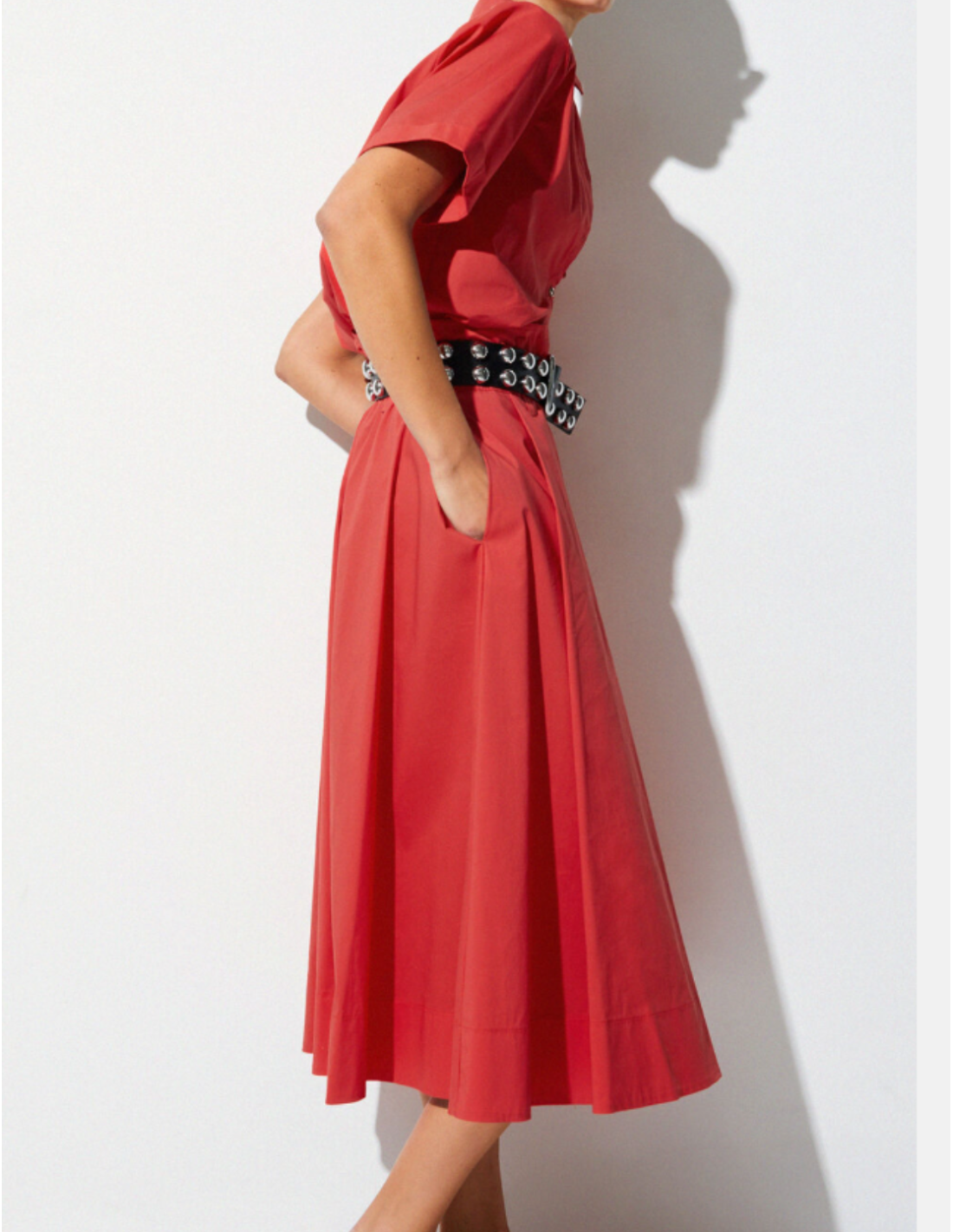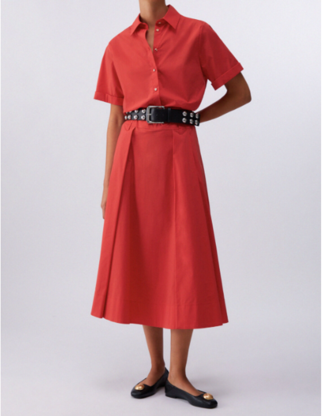 Jupe midi en popeline rouge – Chic contemporain & silhouette féminine