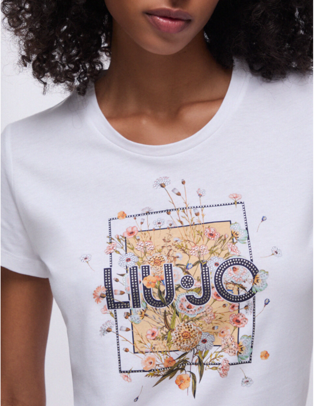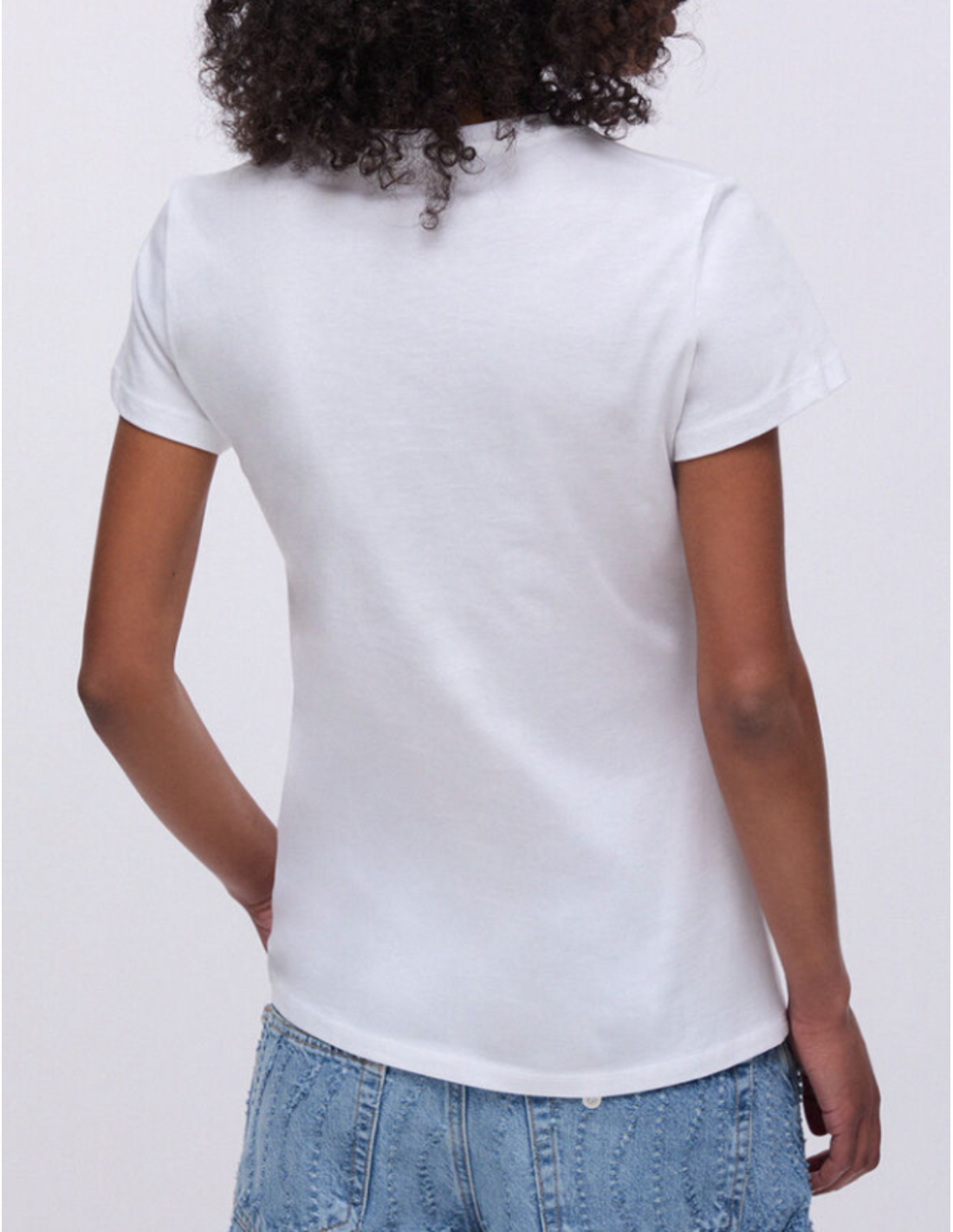 Ce t‑shirt à imprimé et strass combine confort et élégance grâce à sa matière en coton doux et à son motif graphique rehaussé de strass. Il apporte une touche de brillance discrète à une tenue casual, parfait pour un look moderne au quotidien.