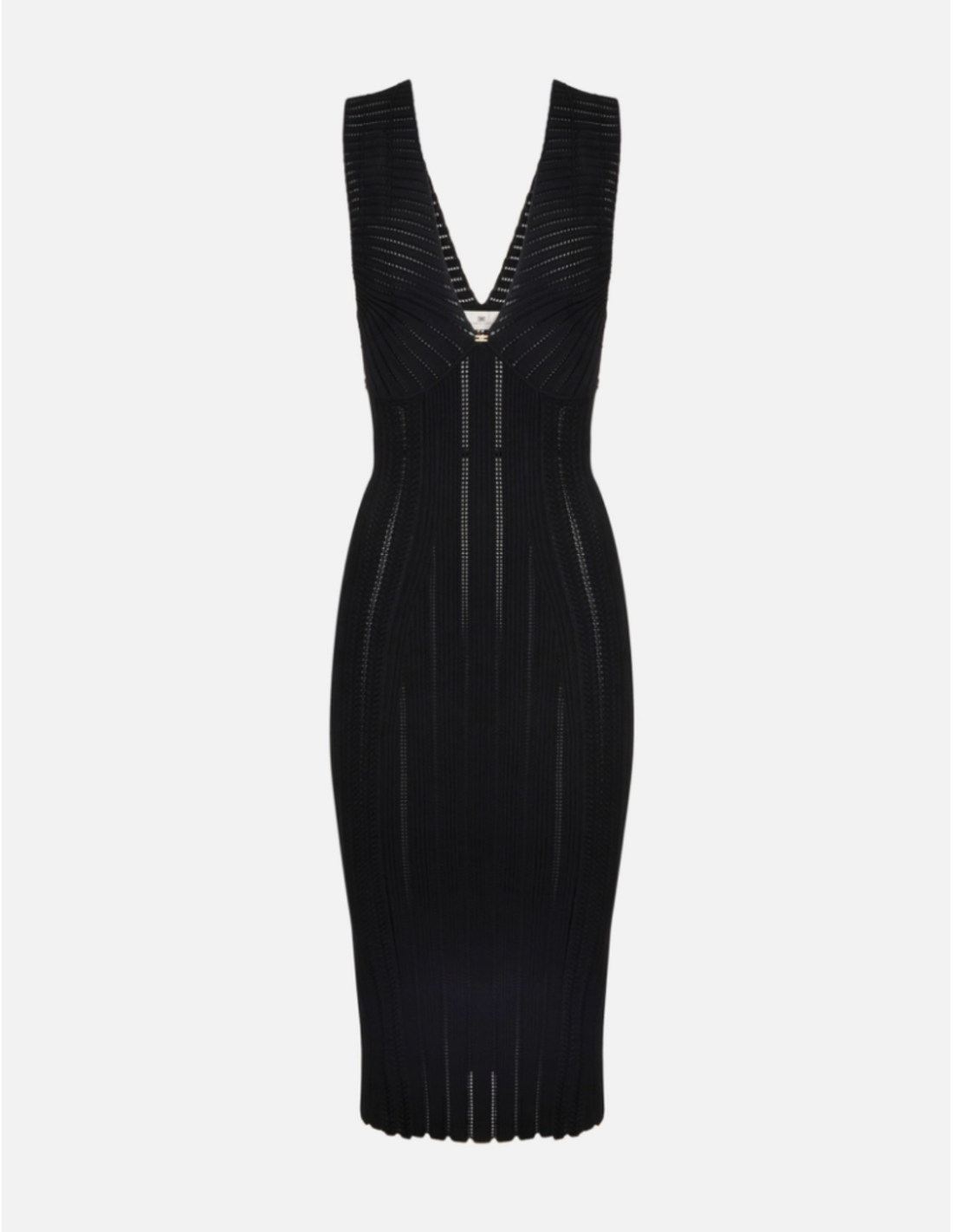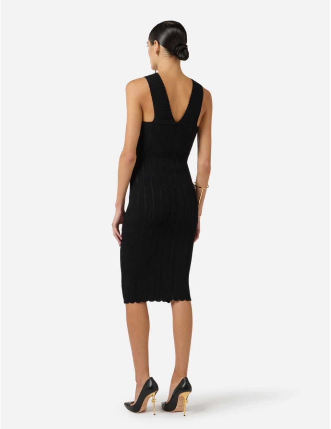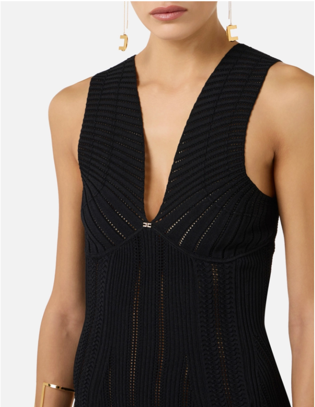 Cette robe en maille ajourée Elisabetta Franchi séduit par sa coupe slim et sa texture délicate ajourée, qui offre une allure élégante et féminine. Confectionnée dans une maille de qualité, elle épouse les formes avec sophistication tout en restant légère et moderne.