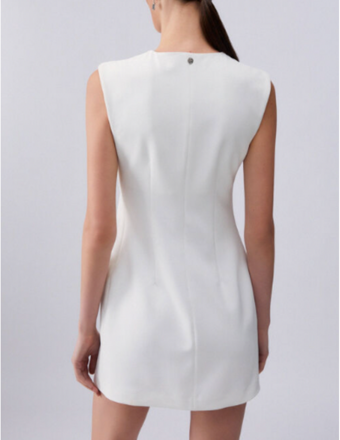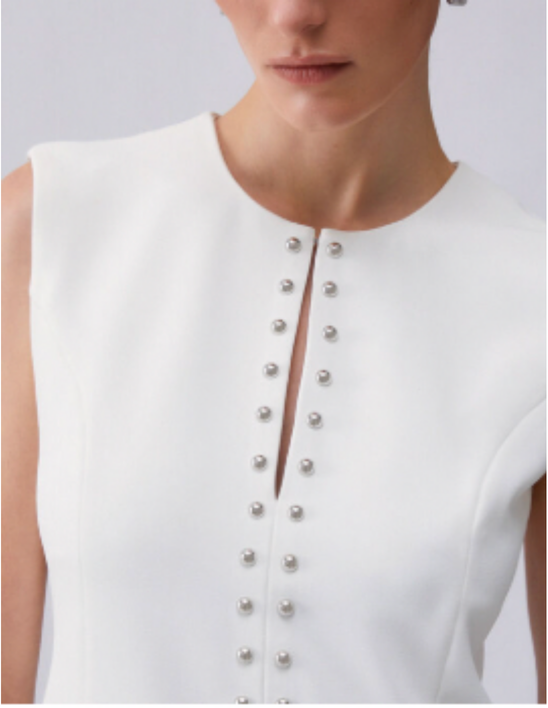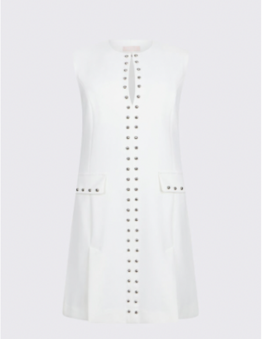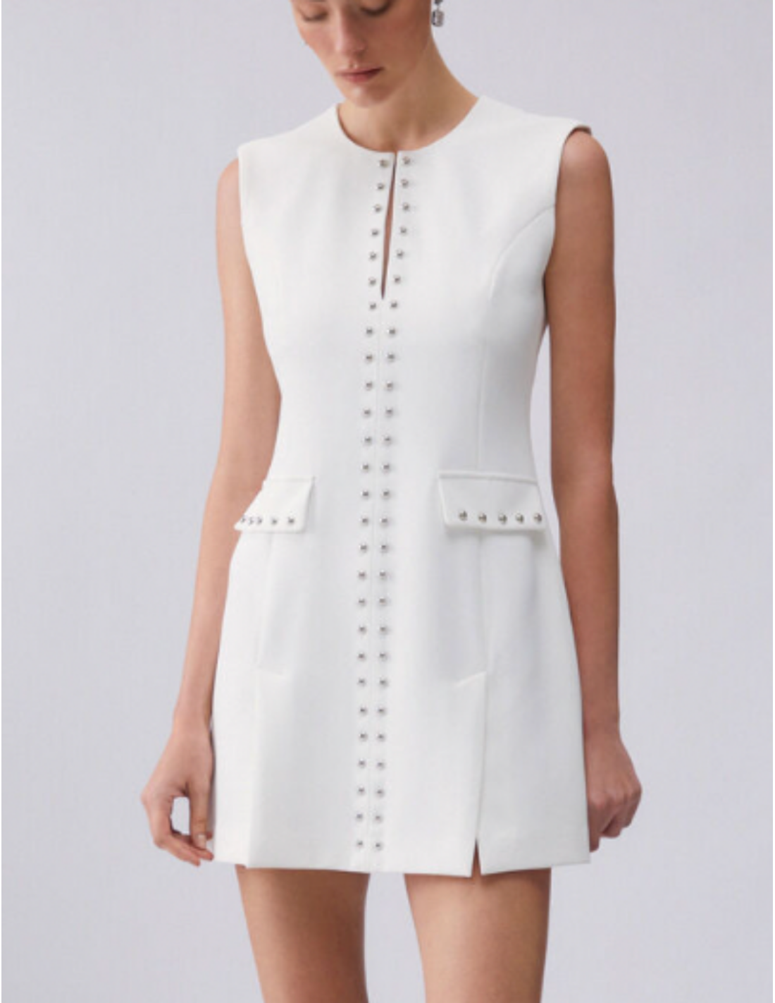 This short dress with studs brings a bold contemporary edge to your wardrobe. The metallic studs create a striking visual effect while maintaining refined elegance.