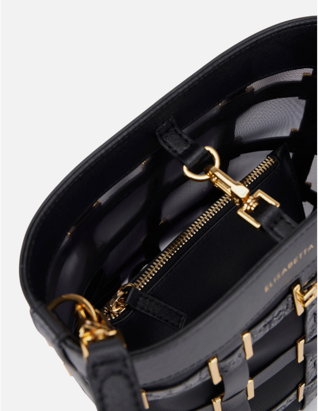 - Détails : Construction en filet, anneaux métalliques dorés