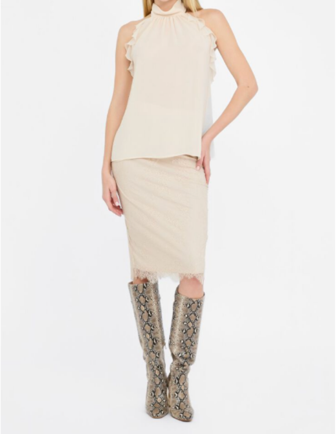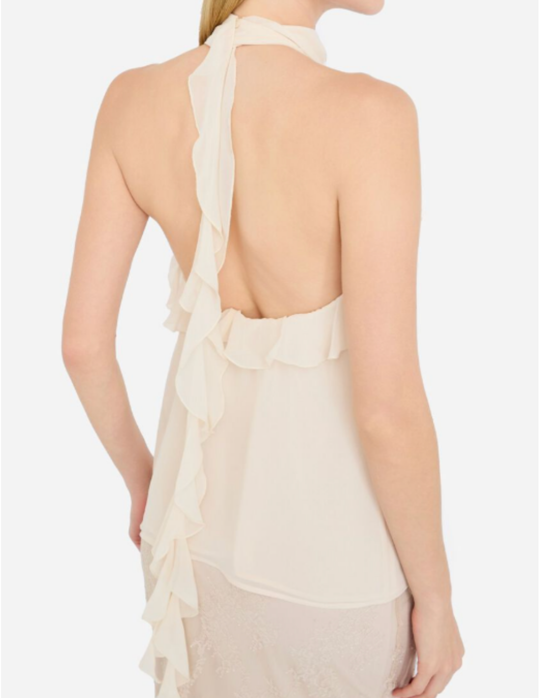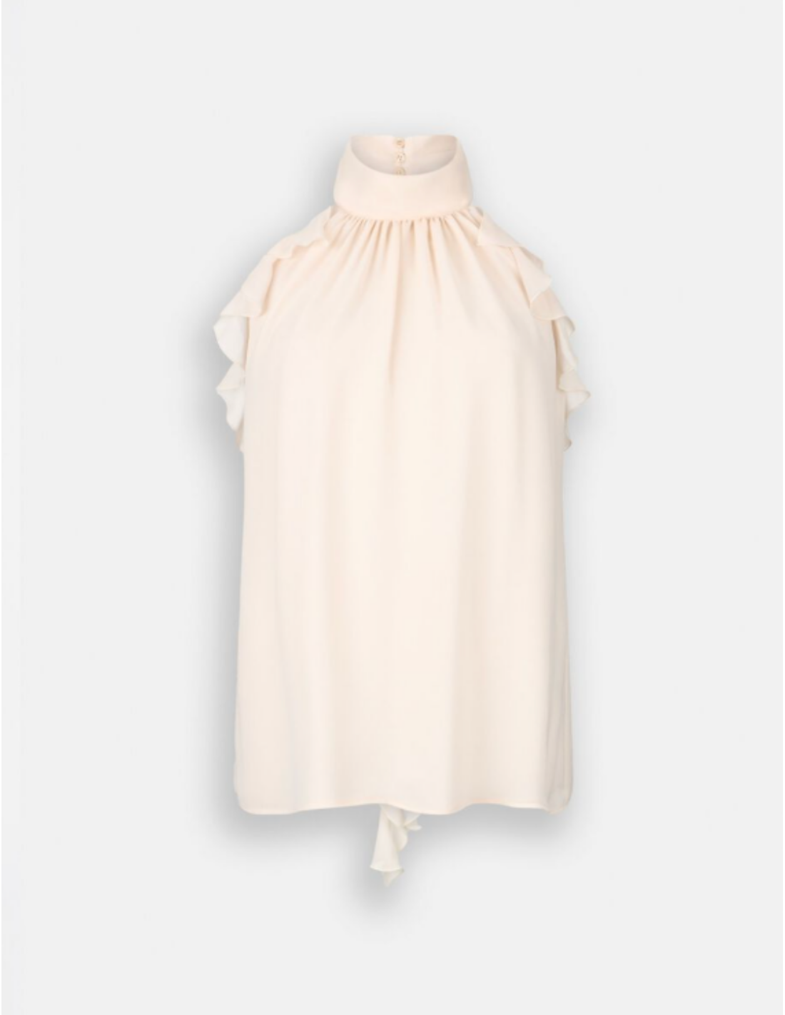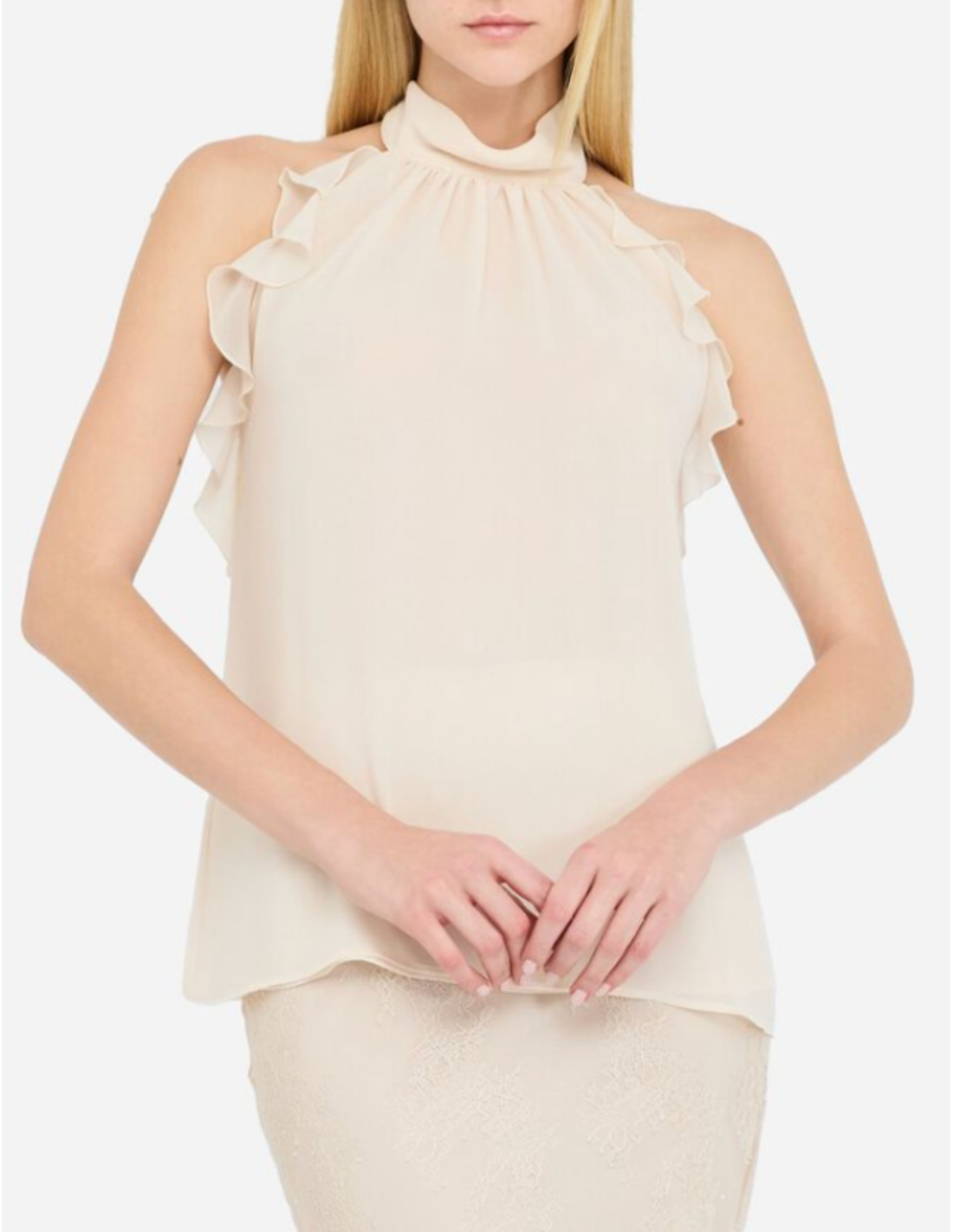 Ce top de cérémonie Liu Jo, confectionné en georgette fluide et léger, évoque la féminité avec raffinement. Sa coupe à encolure américaine est sublimée par des ruches délicates et un volant élégant dans le dos, offrant un jeu de volumes tout en finesse. Il appartient à la ligne « Liu Jo Better », gage d’un style à la fois chic et durable.