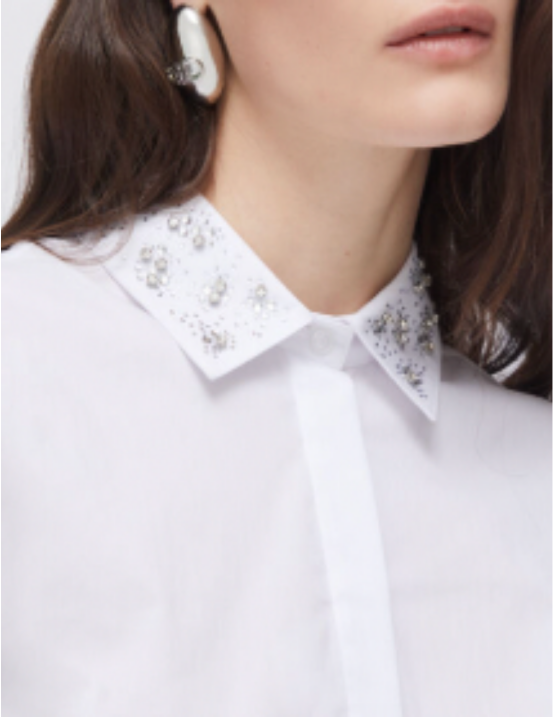 Cette chemise avec broderies de pierres Liu Jo revisite le classique intemporel de la chemise blanche avec des détails sophistiqués. Confectionnée dans une matière de qualité, elle se distingue par ses broderies pierres et bijoux qui apportent une touche de lumière et de modernité à vos tenues.